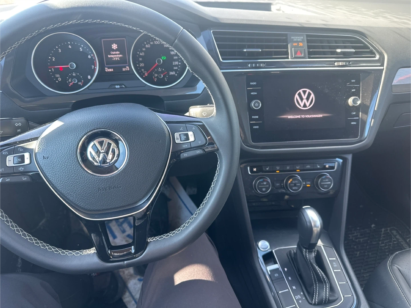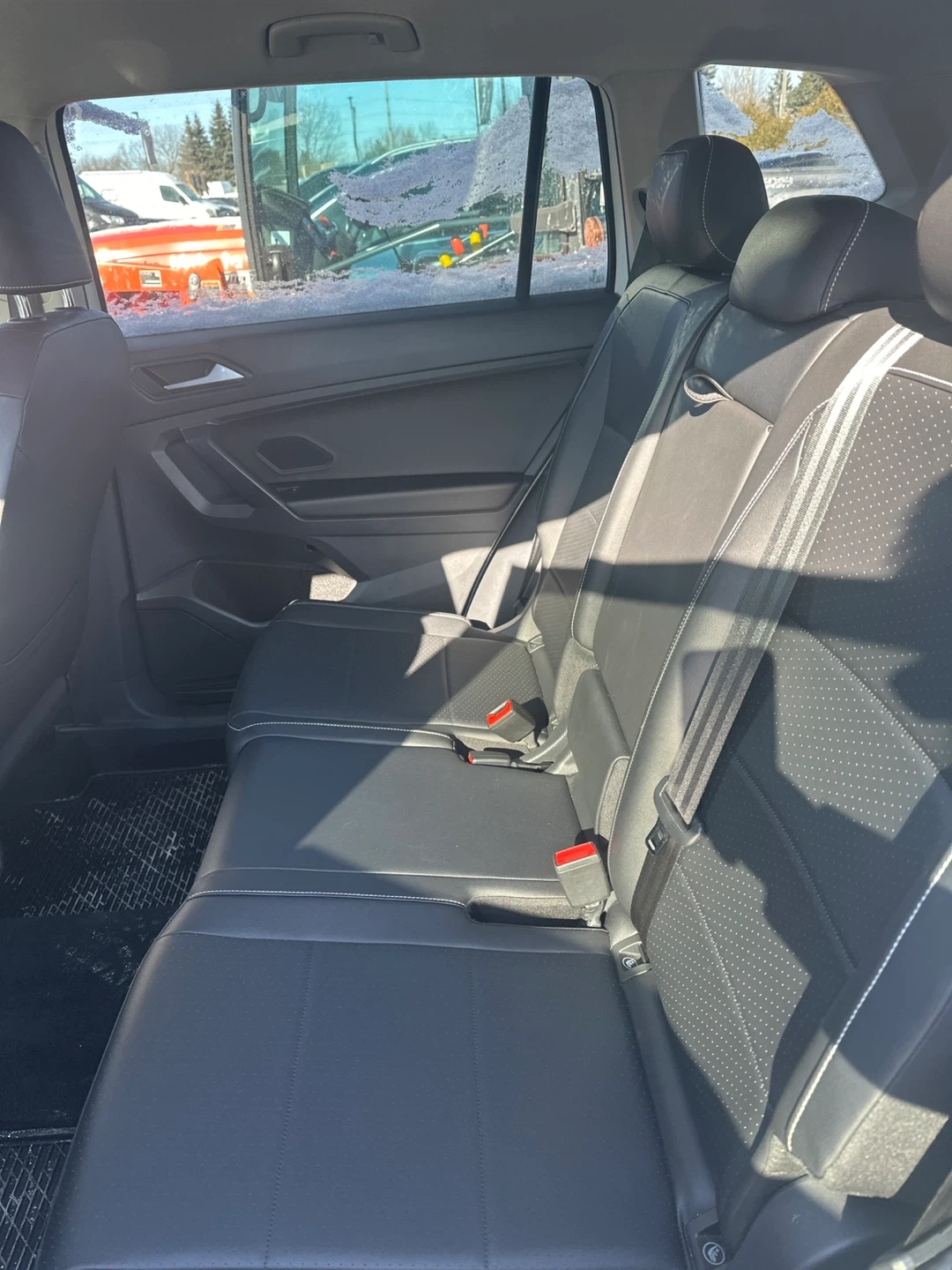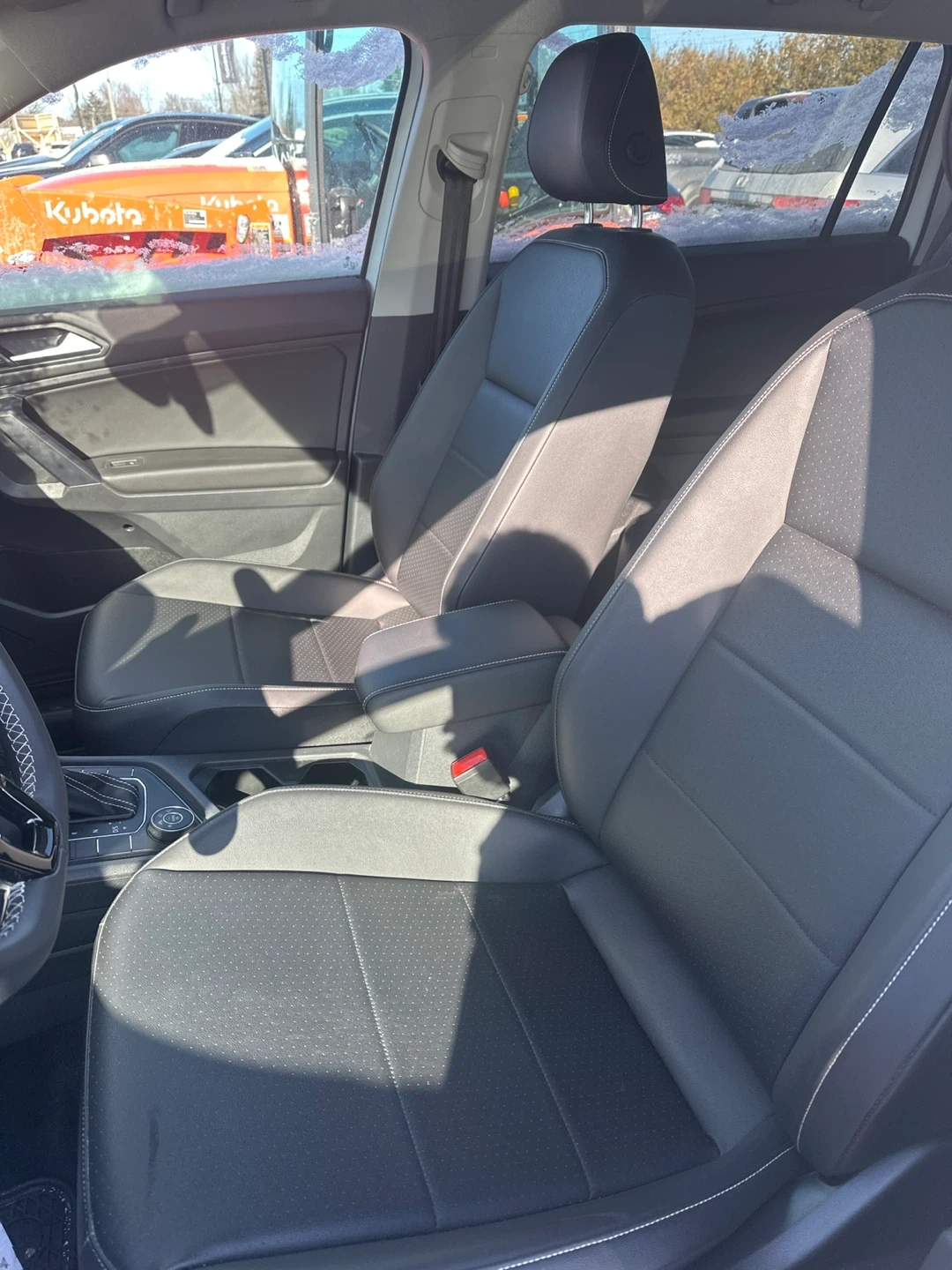 This is a white Volkswagen Tiguan. It has leather heated seats, all wheel drive, alloy wheels, backup camera and blind spot detection. 2.0L turbo engine.