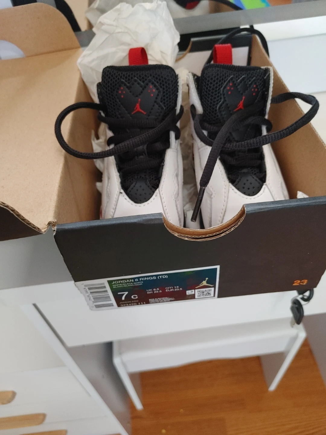 Buy & SellJordan 6 Rings (TD) Crib Shoes Size 7cJordan 6 Rings (TD) Crib Shoes Size 7c$30Kids' Jordan 6 Rings (TD) crib shoes in white, black, and red. Includes original box.ConditionLike newWHERE TO MEETSt. Clair ave west and old weston rdView MapSELLERKimora AlexanderOakwood Village100 reviews0 chats·0 favorites·8 viewsSEND CHAT TO SELLERHi Kimora Alexander! I’m interested in your listing.Hi Kimora Alexander! I’m interested in your listing.Get the Karrot app to chatSign In to chat