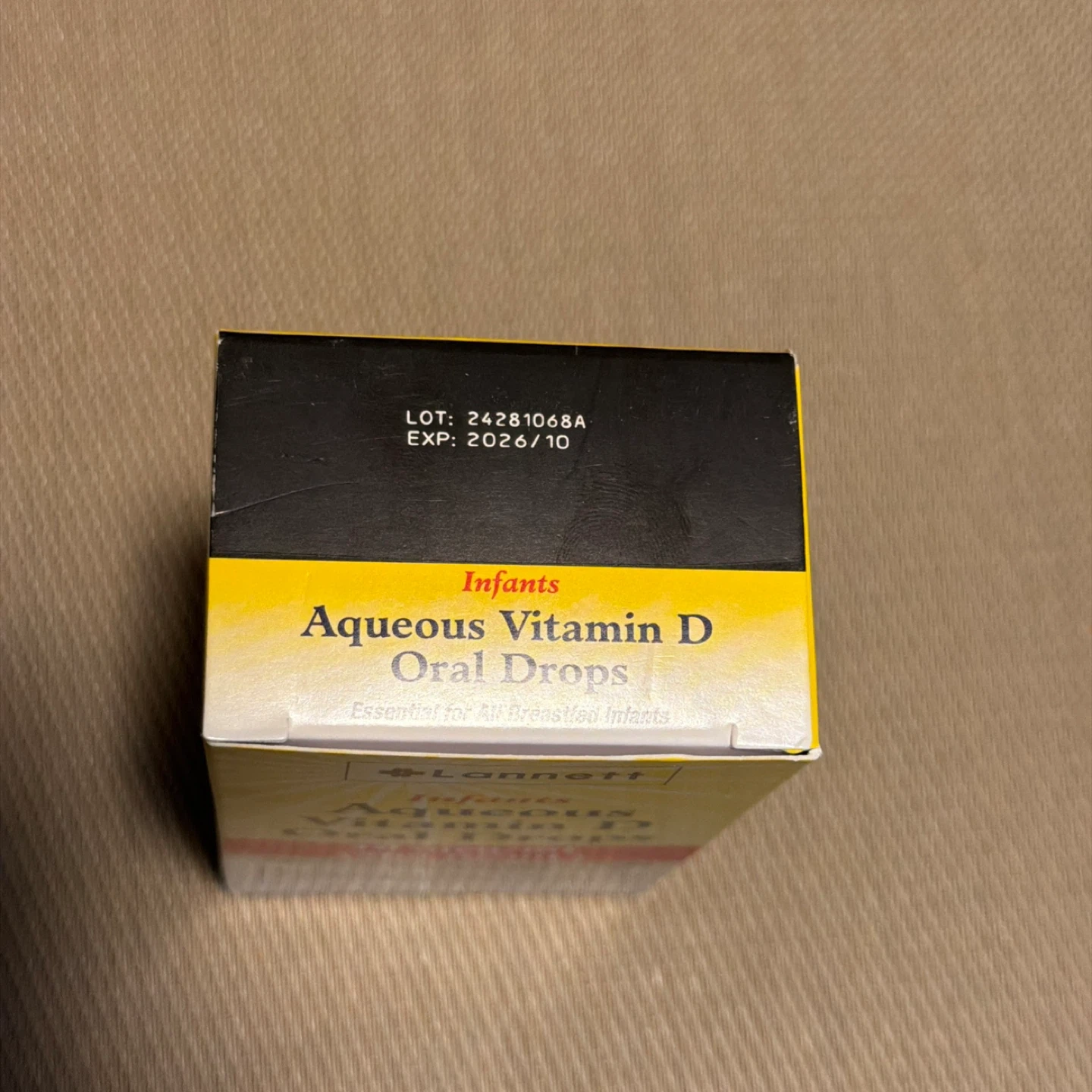 Lannett Infants Aqueous Vitamin D Oral Drops are essential for all breastfed infants. Each bottle contains 50 mL (1 2/3 fl oz) of the supplement drops. The expiration date is 2026/10.