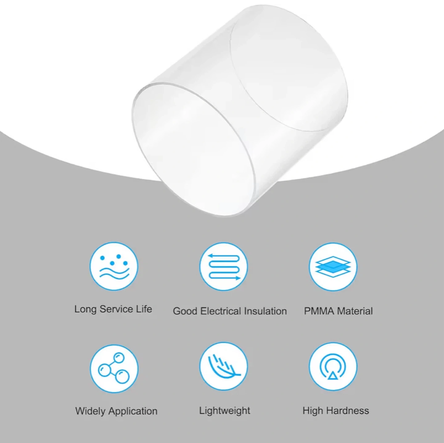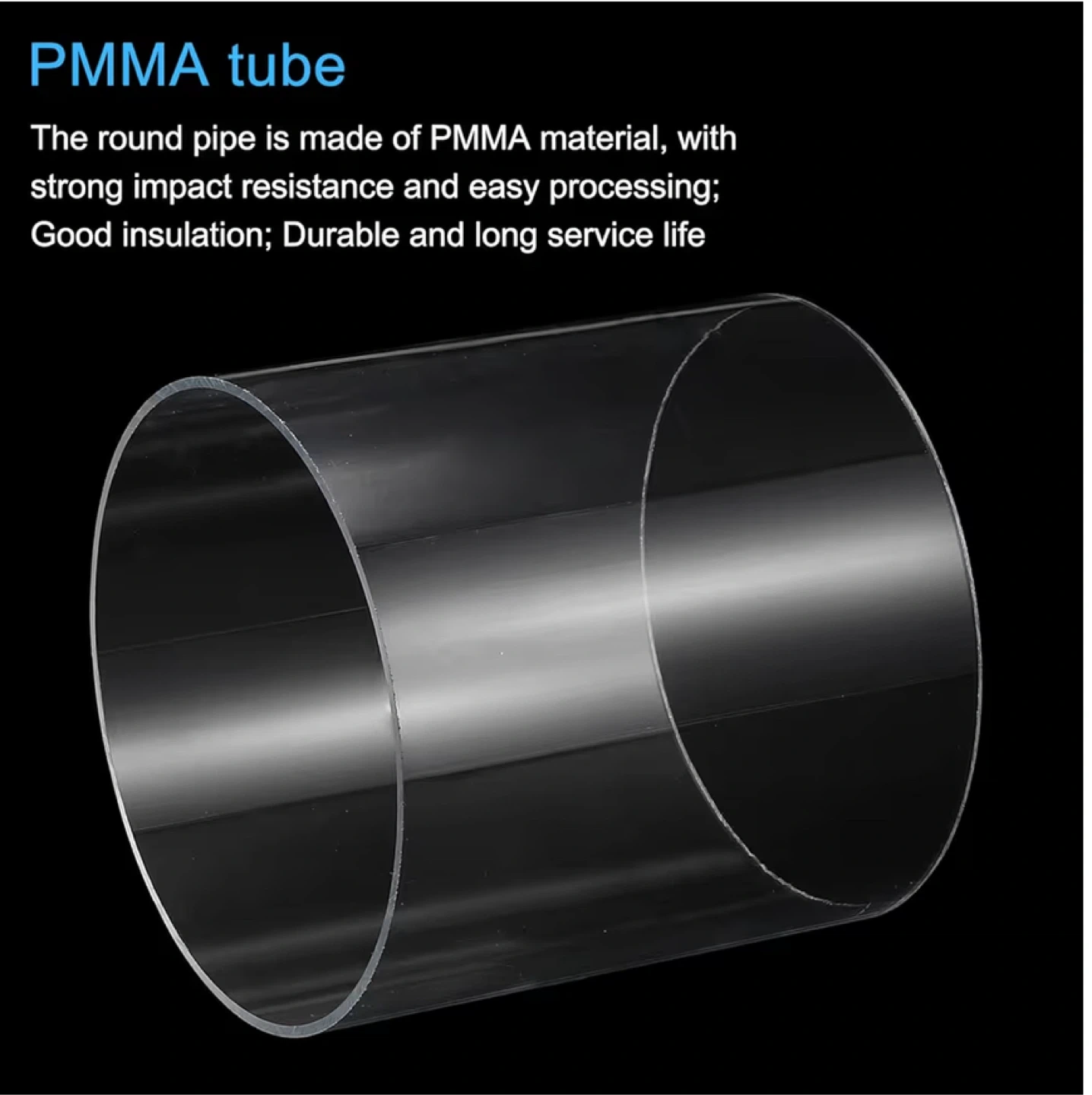 This clear tube is made from PMMA material. It's lightweight and offers high hardness and good electrical insulation. The tube is durable with a long service life.