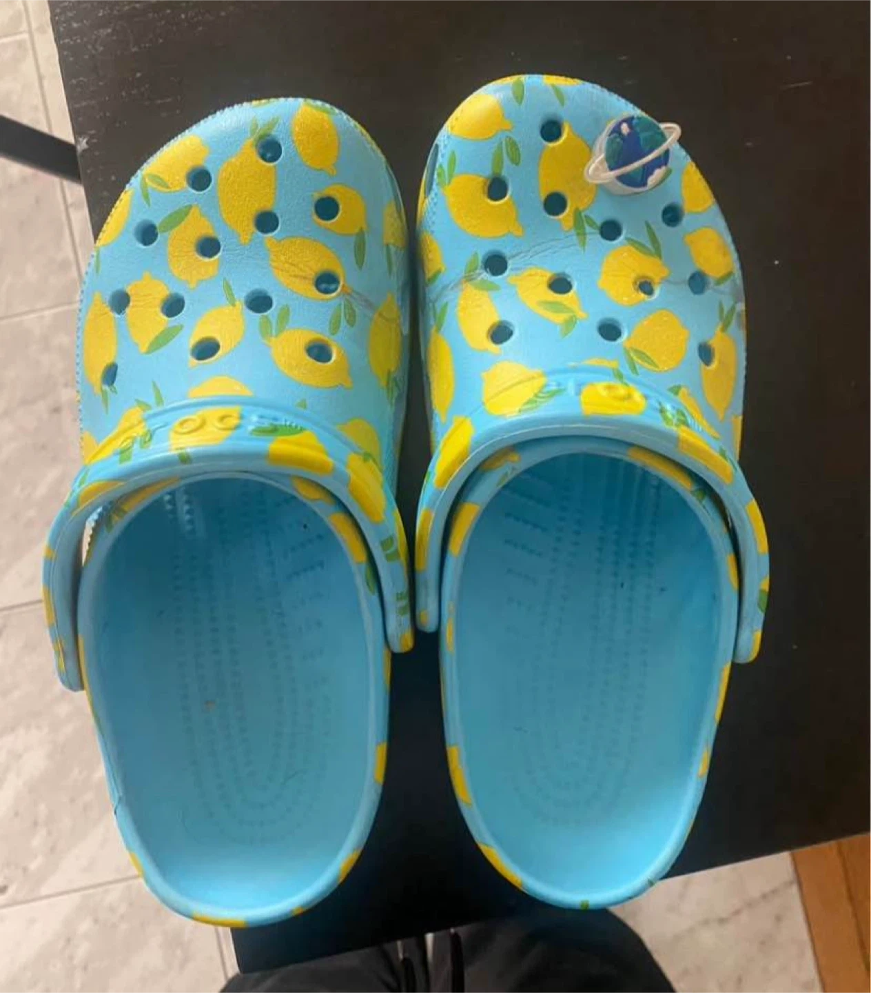 Buy & SellCrocs Lemon Print ClogsCrocs Lemon Print Clogs$20Crocs clogs with a blue and yellow lemon print. Includes a planet jibbitz. Material is Croslite. Size 8 womensSize8 BrandCrocsWHERE TO MEETDowntownView MapSELLERBellaOakwood Village513 reviews0 chats·3 favorites·24 viewsSEND CHAT TO SELLERHi Bella! I’m interested in your listing.Hi Bella! I’m interested in your listing.Get the Karrot app to chatSign In to chat