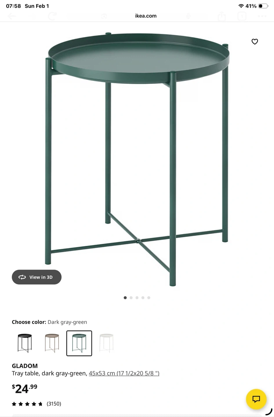 This IKEA GLADOM tray table comes in a dark gray-green colour. It measures 45x53 cm. It's a handy side table for any room!
