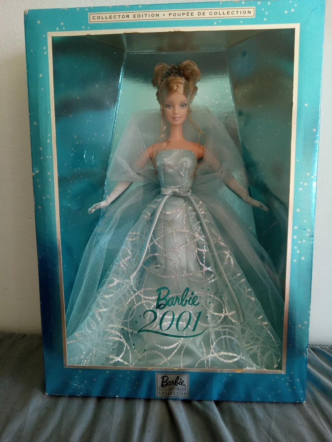 This is the Barbie 2001 Collector Edition doll. It comes in its original box. This doll commemorates an age of peace and prosperity.