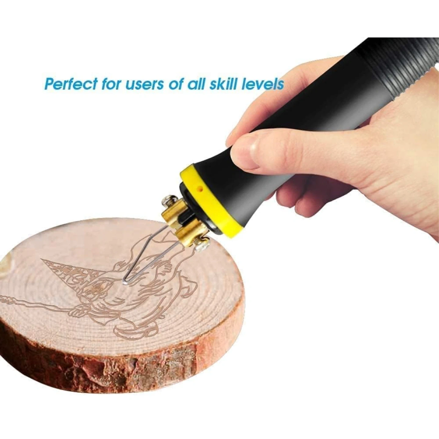 This wood burning kit comes with two pens and a digital temperature control unit. It includes a variety of tips for different designs. The unit is suitable for users of all skill levels, allowing for precise temperature adjustments. Great for crafters and artists!