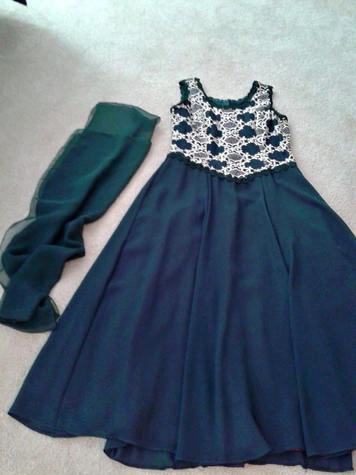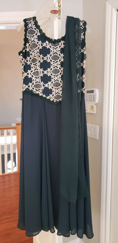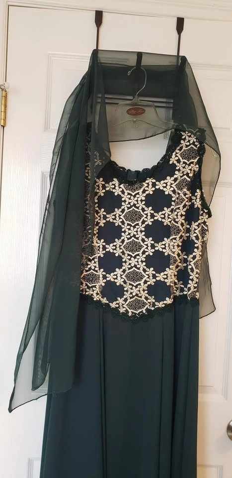 DRESS/ Gown) Dark Green with Scarf