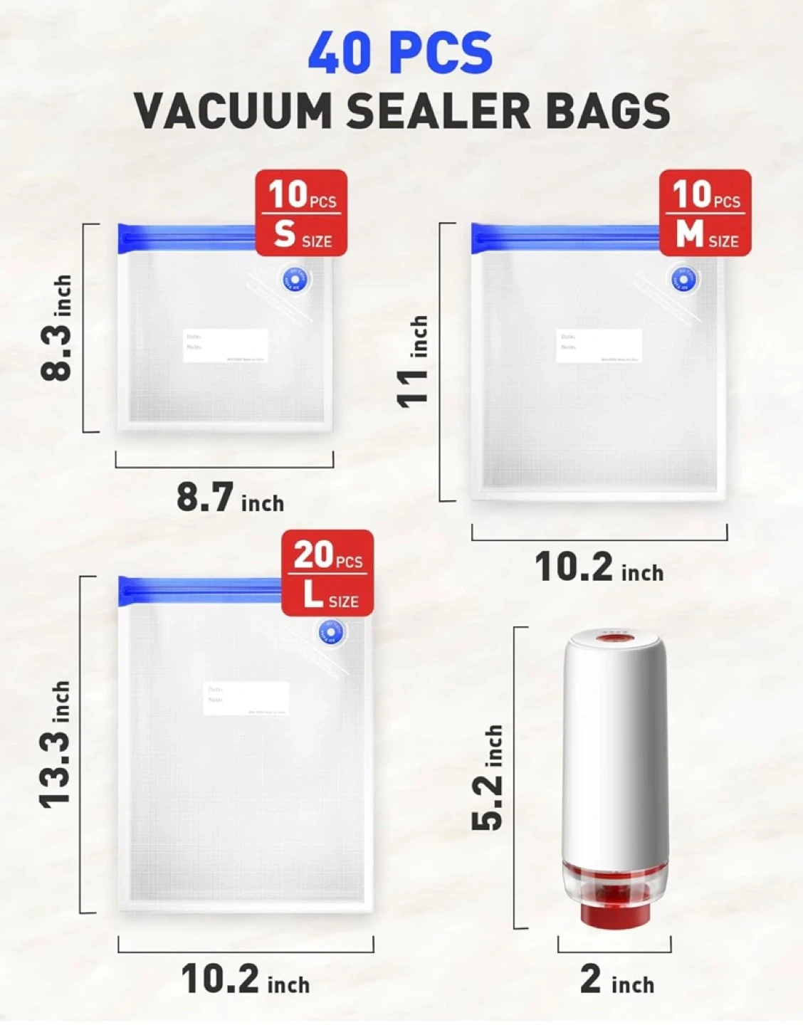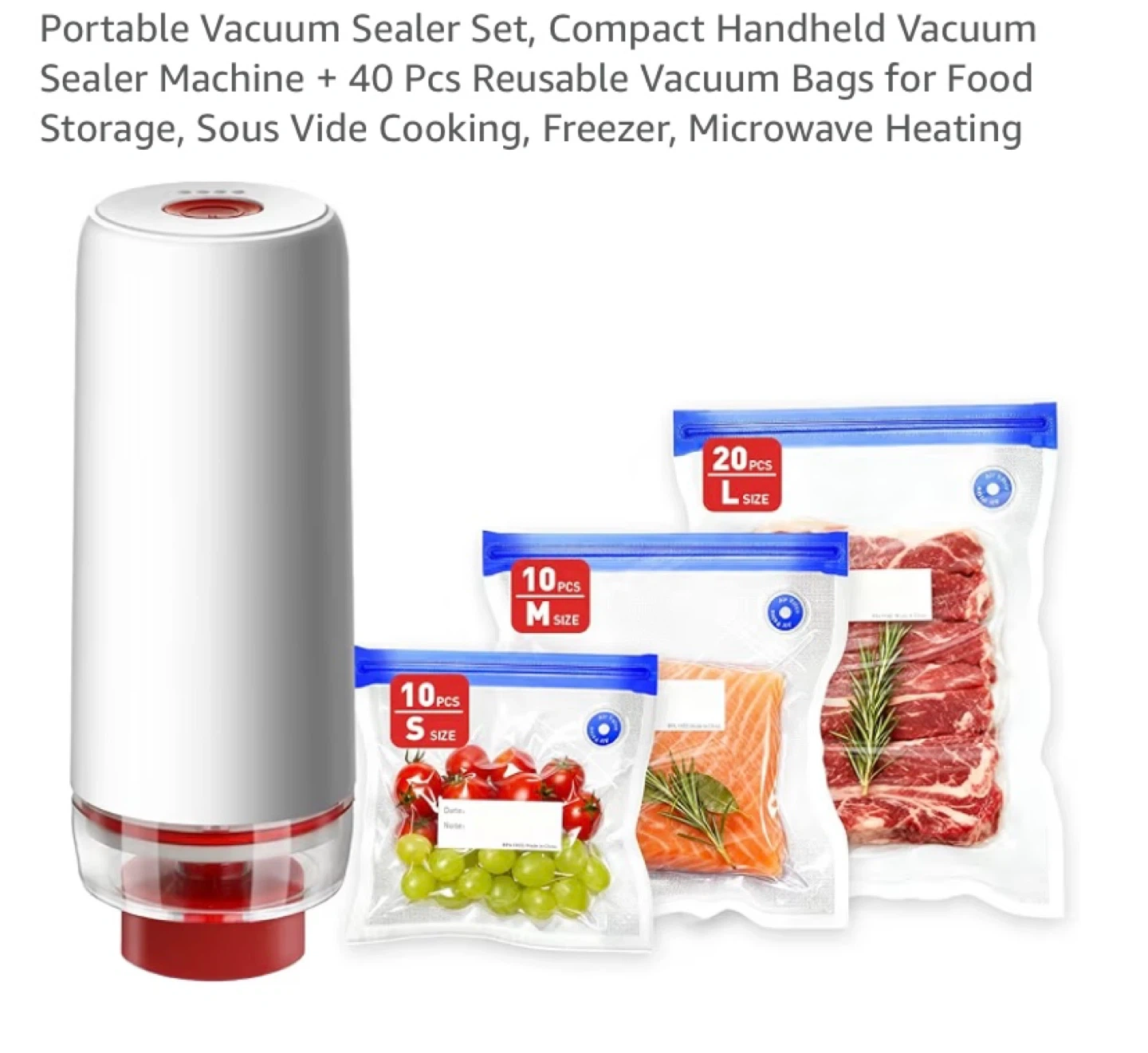 Zabins Portable Vacuum Sealer Set with 36 Bags