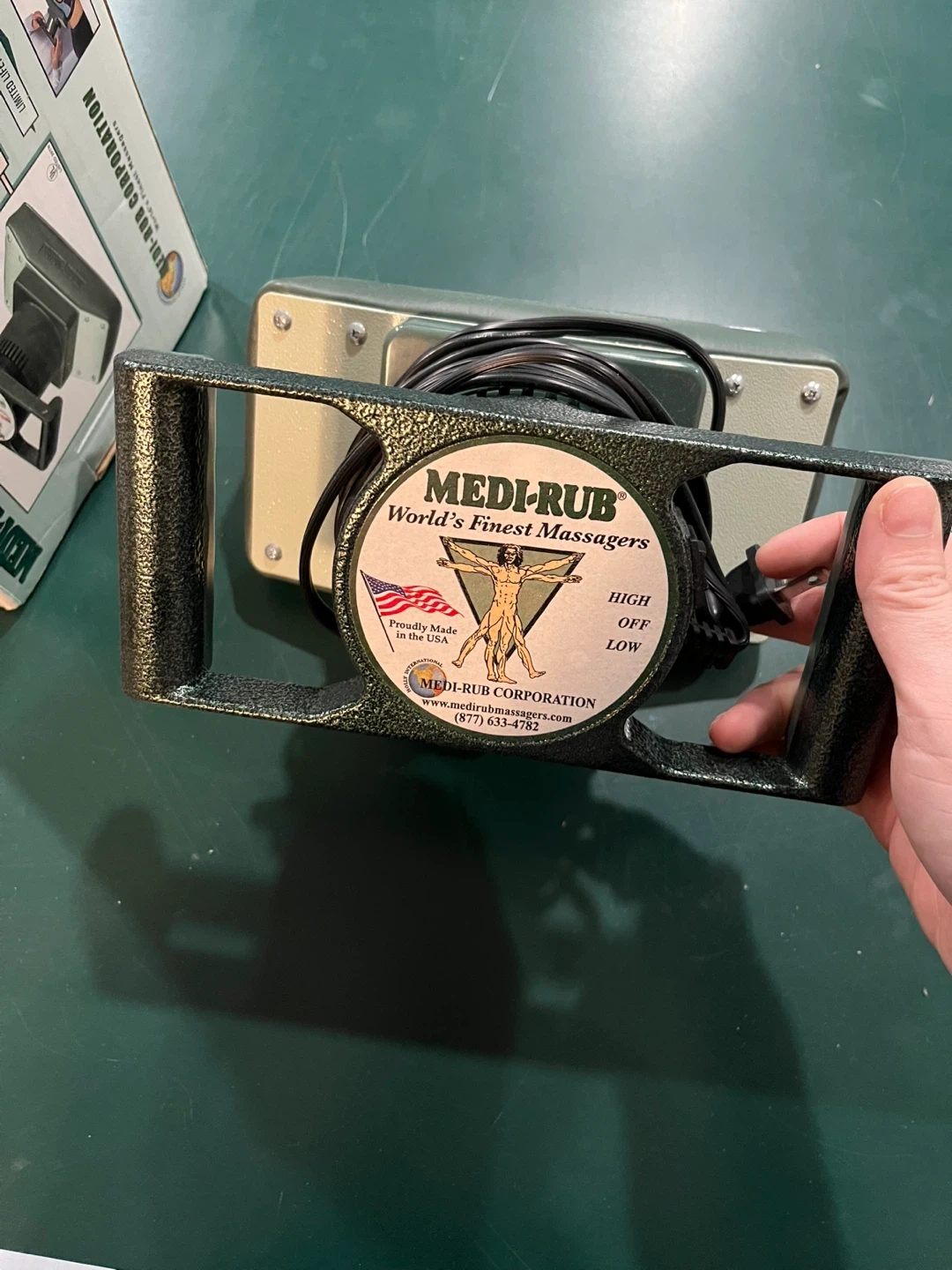 This is a Medi-Rub Body Massager 2000 Plus. It features a quiet, powerful, 2-speed motor for personal and clinical treatment. Relieves tension and stress, and soothes aching muscles. I bought two and use one, this one has never been used.