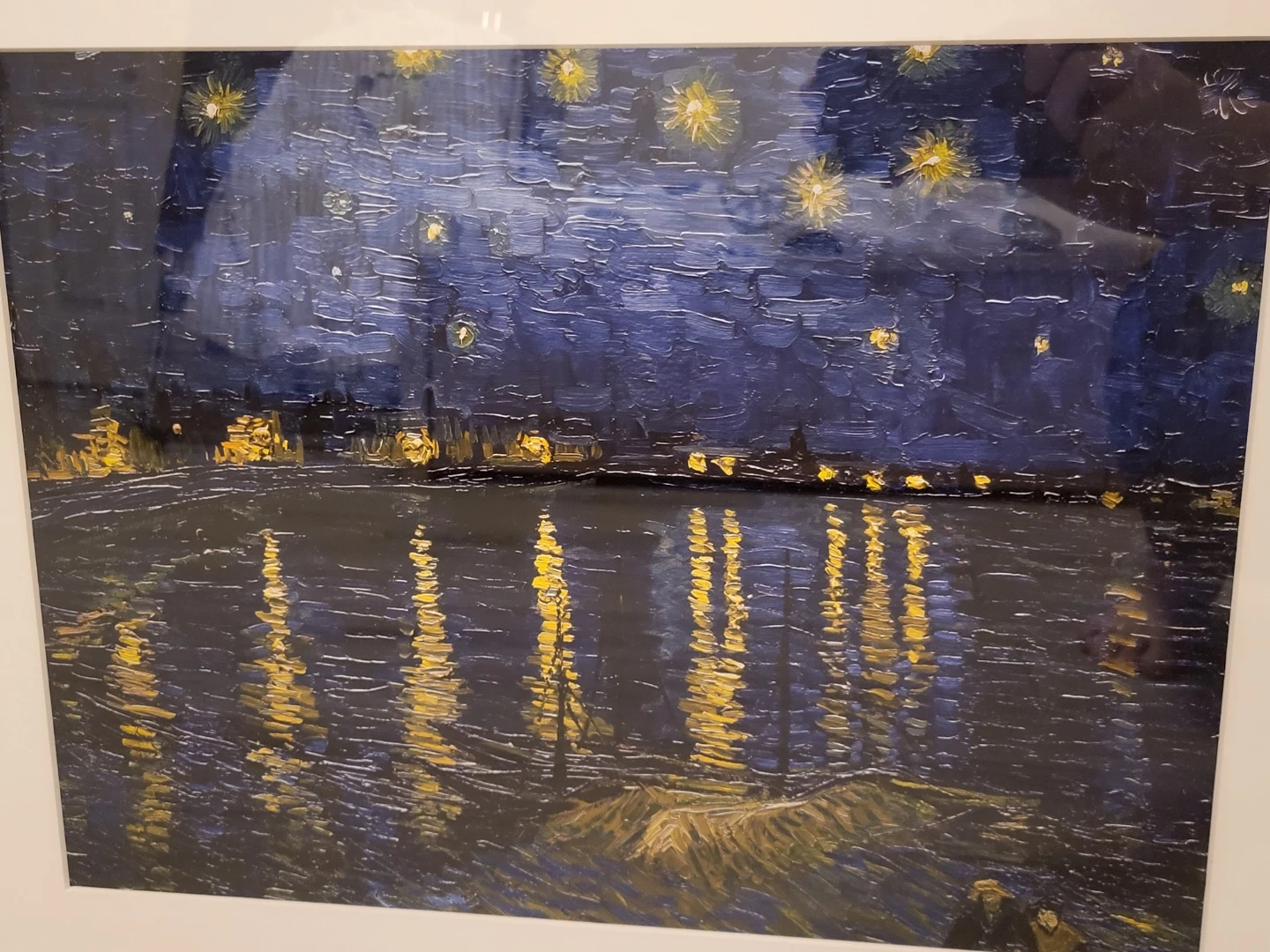 Two framed art prints inspired by Van Gogh's famous works. Includes Starry Night and Starry Night Over the Rhône reproductions. White frames.