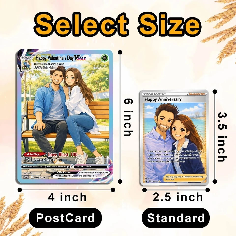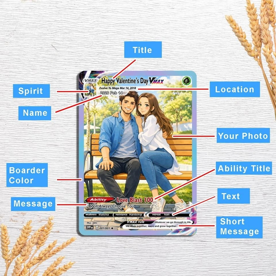 Create a one-of-a-kind custom Pokémon-style card using your own photo or a professionally converted cartoon illustration. A unique, high-quality keepsake designed for collectors, couples, and meaningful gifts. Perfect for Birthday Gifts, Anniversary Gifts, Christmas Gifts, Valentine’s Day, Father’s Day, or as a personalized Pokémon gift.