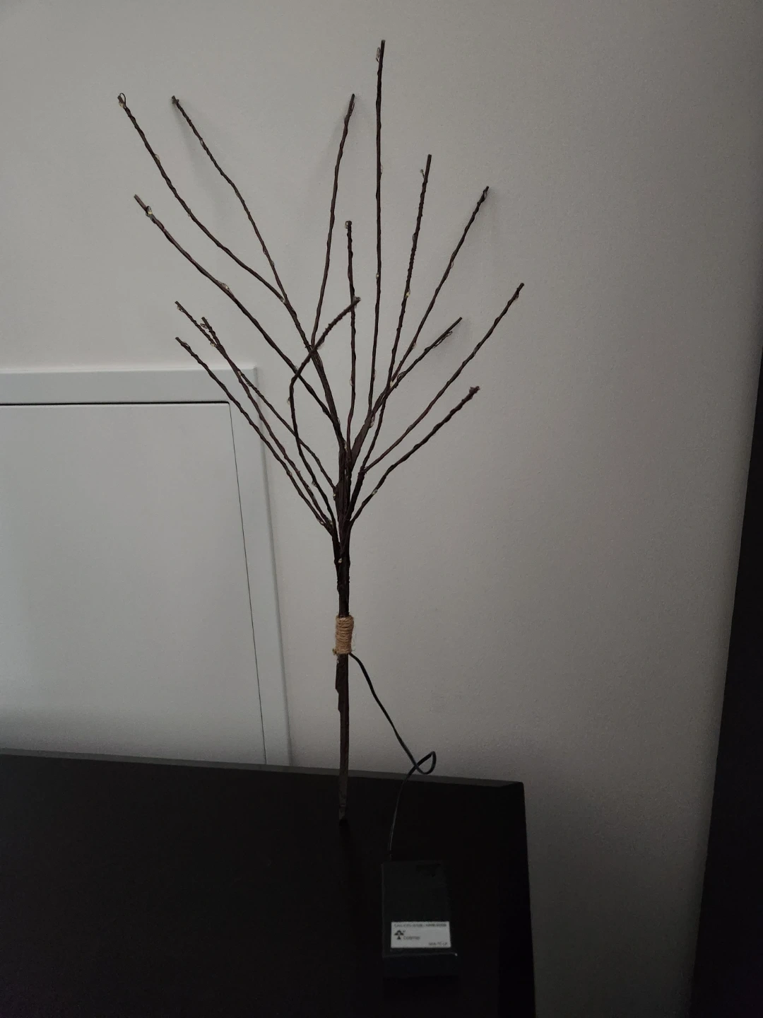 This decorative LED birch branch adds a warm glow. The flexible branches can be shaped to your preference. Takes 3 AA, will include. Smoke free home, tallest poont around 25 inch