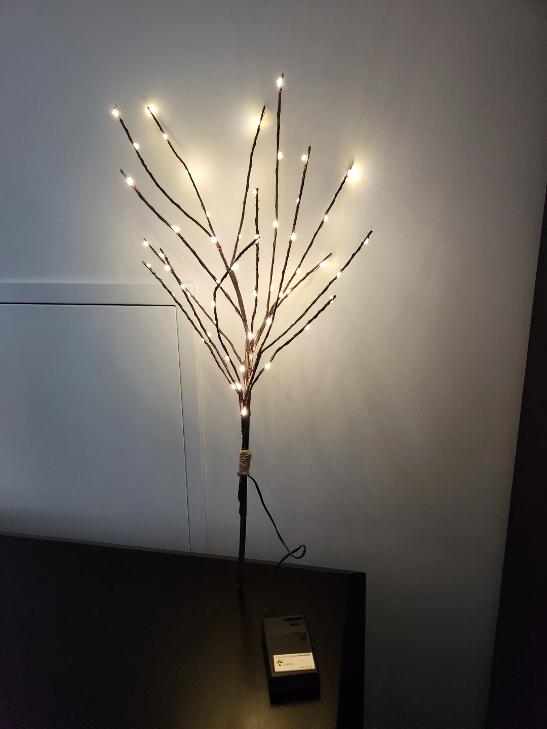 This decorative LED birch branch adds a warm glow. The flexible branches can be shaped to your preference. Takes 3 AA, will include. Smoke free home, tallest poont around 25 inch