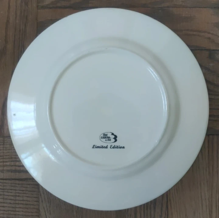This is a decorative plate commemorating the 1776-1976 Bicentennial. It features an eagle, two flags, and the Liberty Bell. The plate is from The Saginaw Line and is a limited edition.