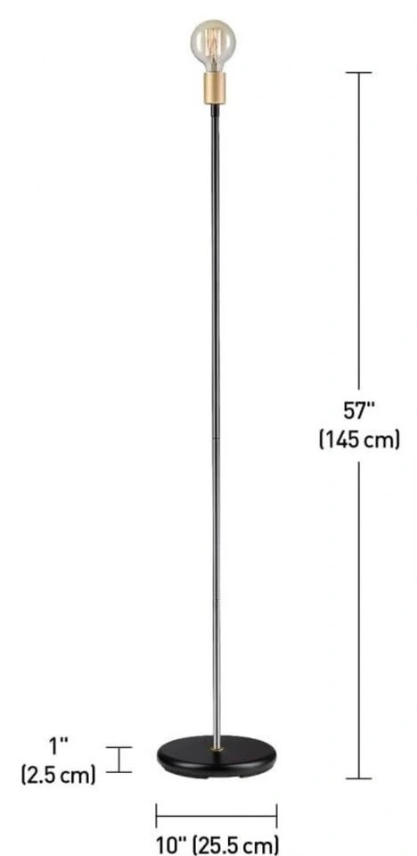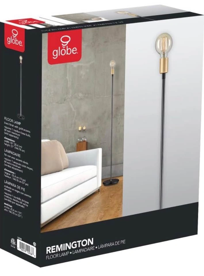 Globe Electric 12938 57" Floor Lamp. Black with satin finish and exposed gold socket. In-line on/off rocker switch. Perfect for bedrooms or living rooms.