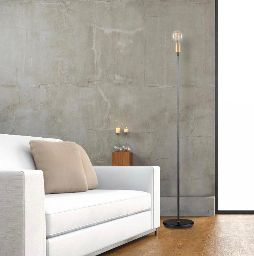 Globe Electric 12938 57" Floor Lamp. Black with satin finish and exposed gold socket. In-line on/off rocker switch. Perfect for bedrooms or living rooms.