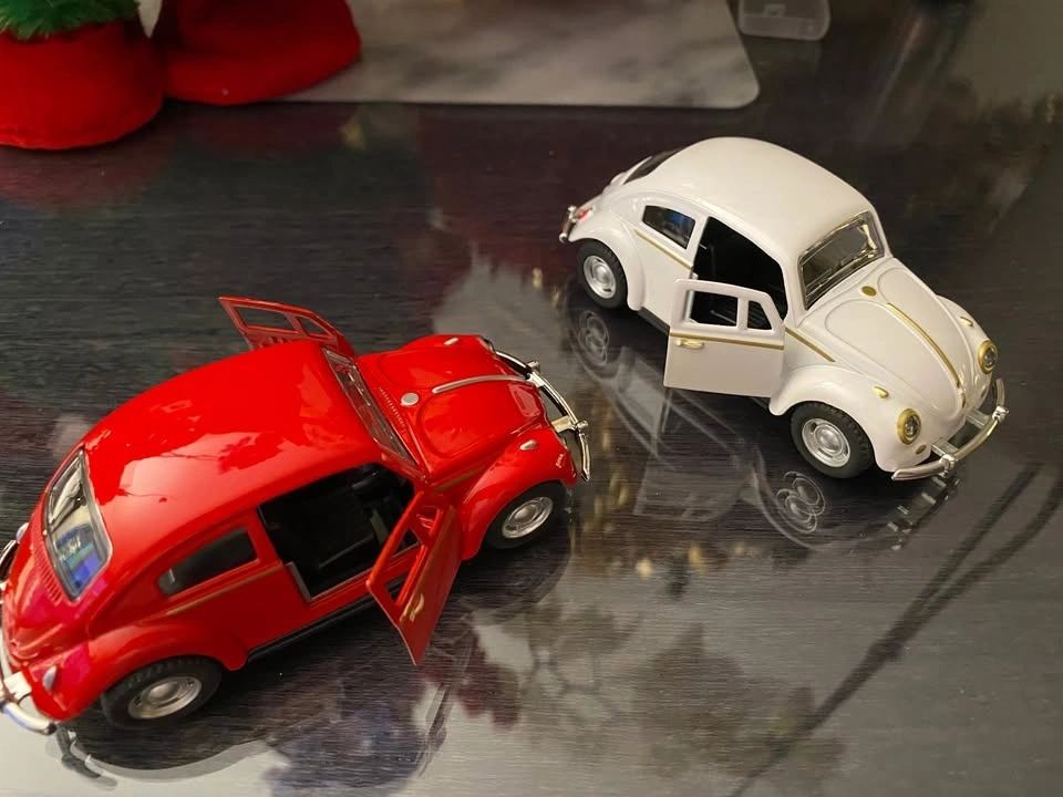 Brand new classic model Volkswagen Beetle metal cars with functioning swinging doors and rewind acceleration.