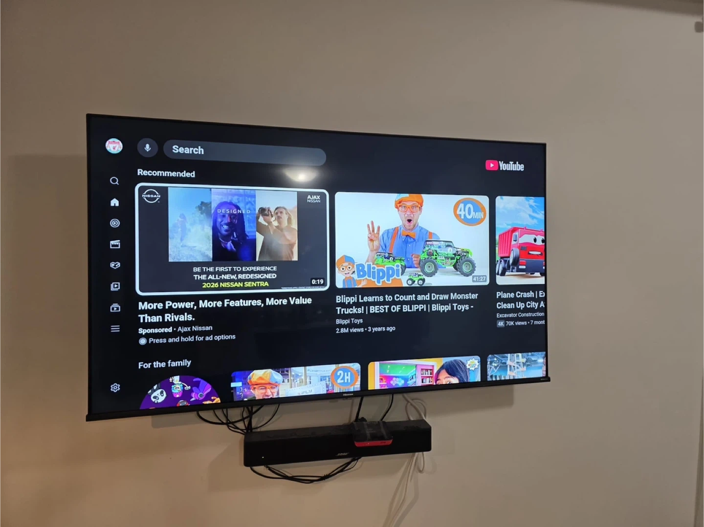 It's a Hisense 58-inch smart TV. The screen is flat and it's wall-mounted This TV is great for watching movies or gaming! Recently purchased - works perfectly - original box also available -