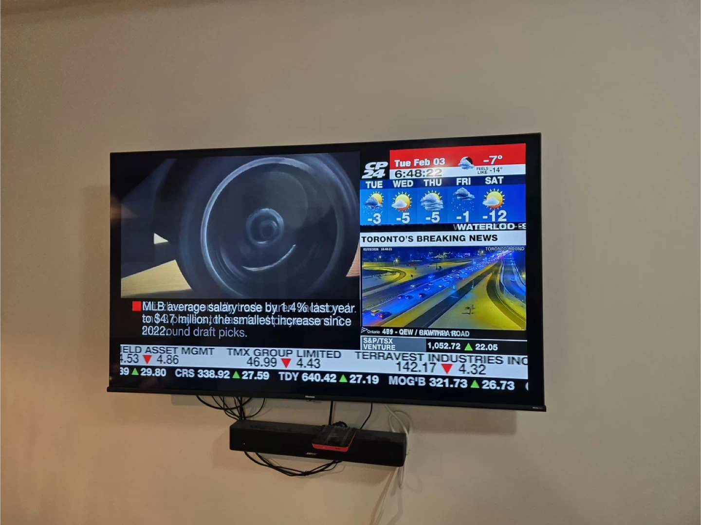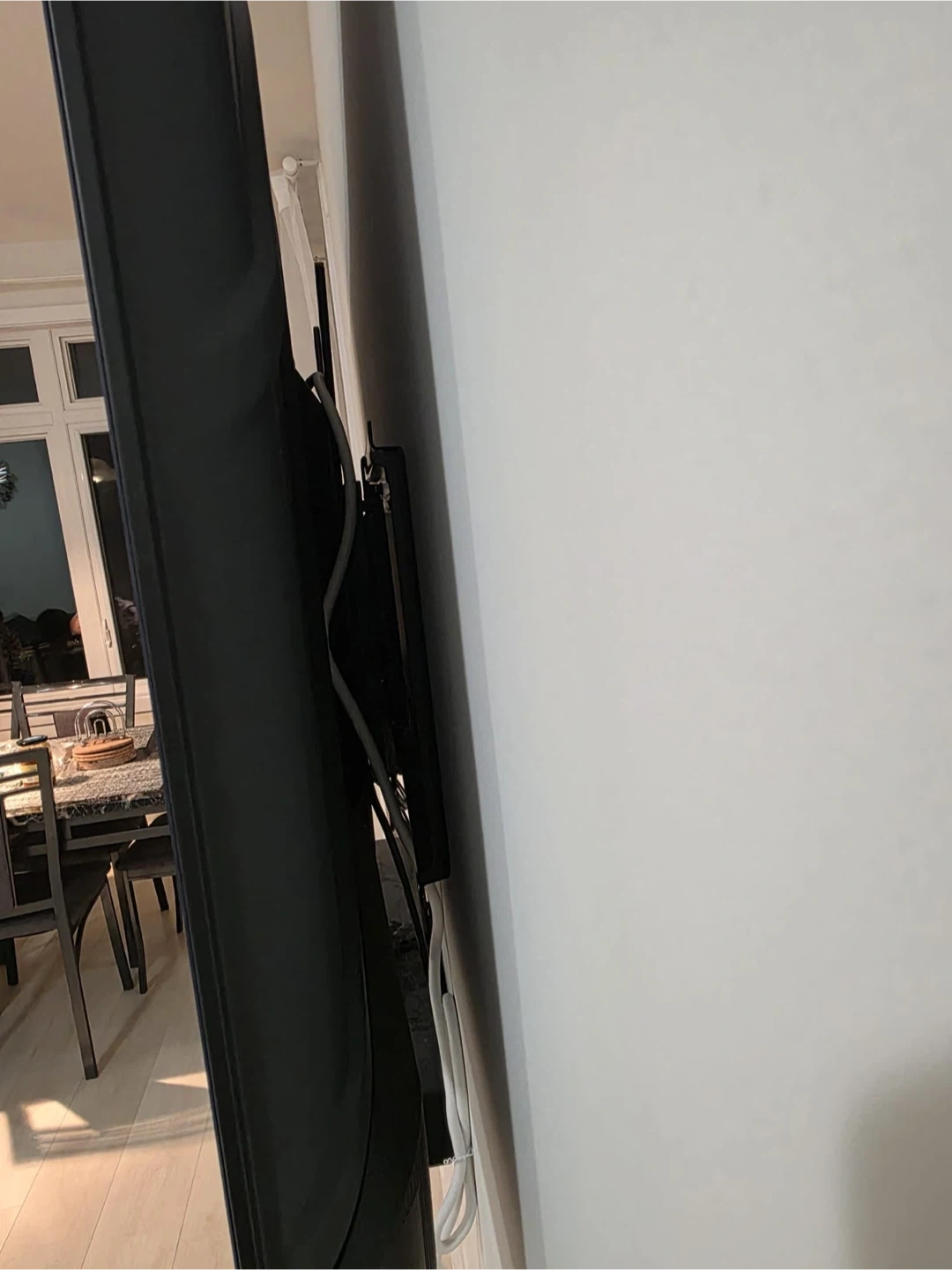 It's a Hisense 58-inch smart TV. The screen is flat and it's wall-mounted This TV is great for watching movies or gaming! Recently purchased - works perfectly - original box also available -