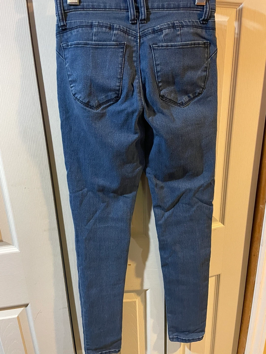 These are VENUS women's blue denim jeans. They're a classic skinny fit with a mid-rise waist. Made from a comfortable stretch denim fabric.