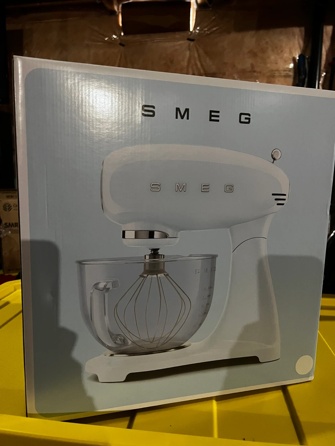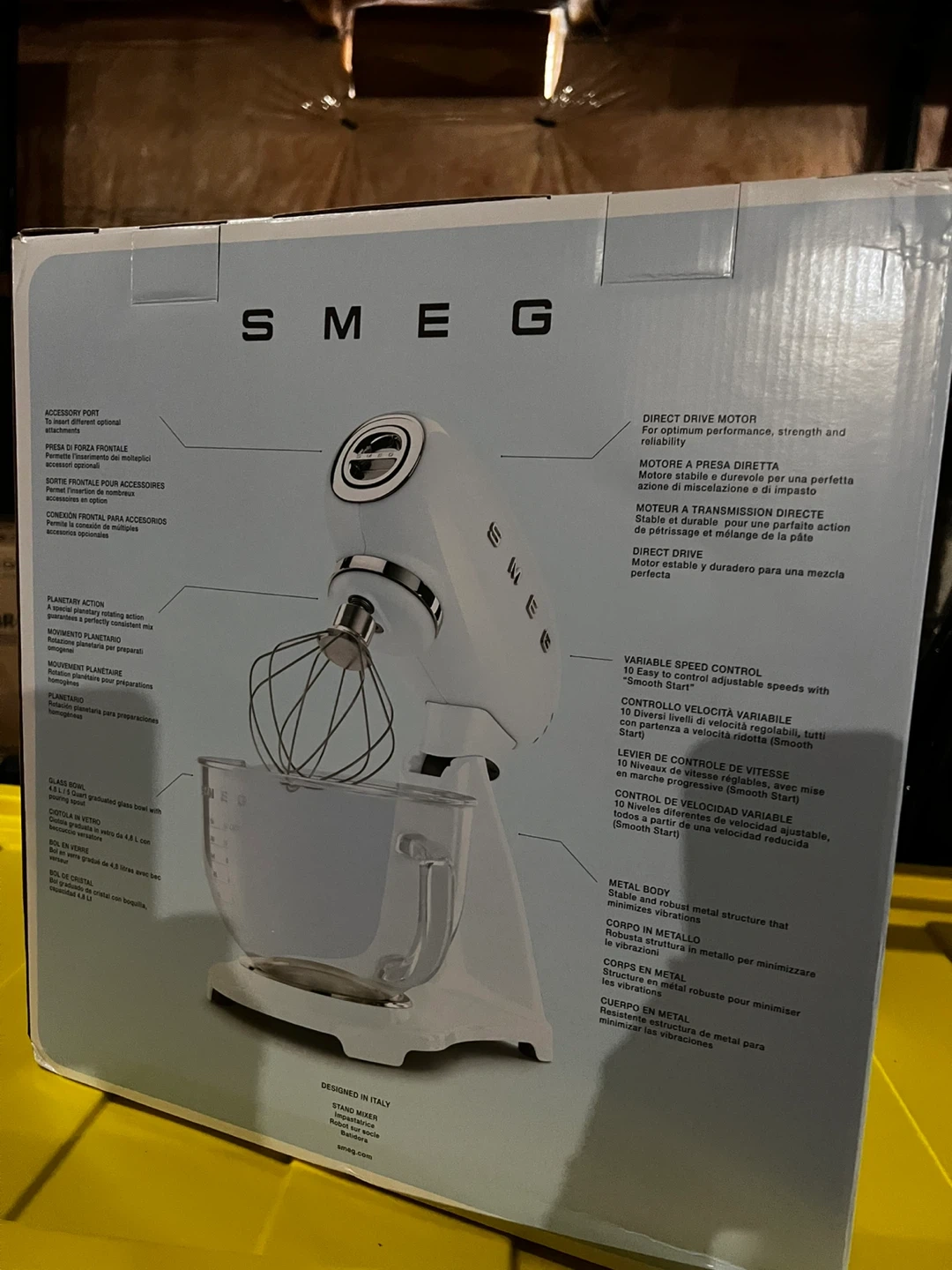 This is a white SMEG stand mixer. It has a 4.8L glass bowl and a direct drive motor. Variable speed control makes it easy to use. Brand new in box - box has never been opened. Pick up in keswick