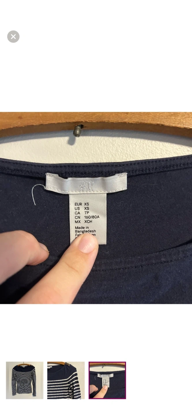 H&M brand. Long sleeve shirt. Navy blue & white striped. Size women’s xs. Brand new condition