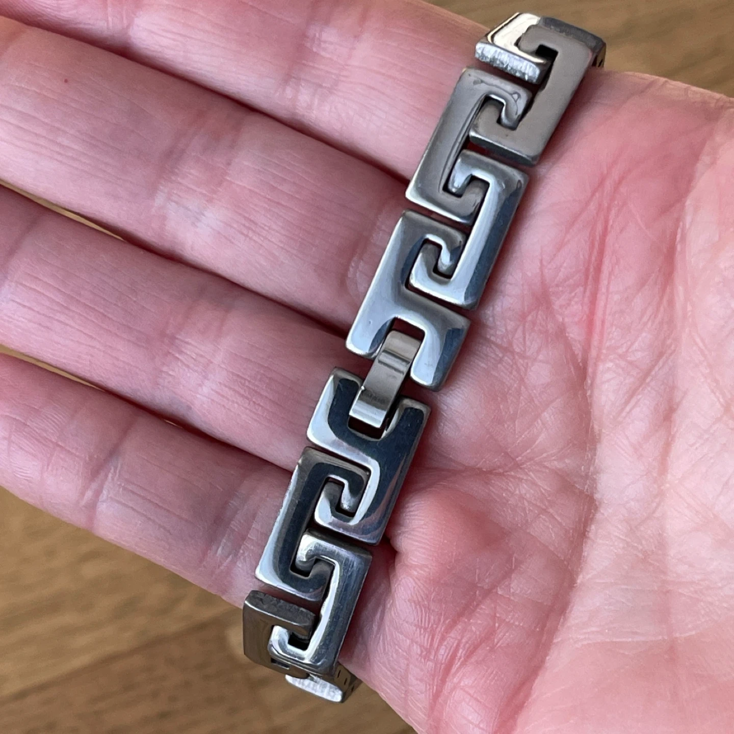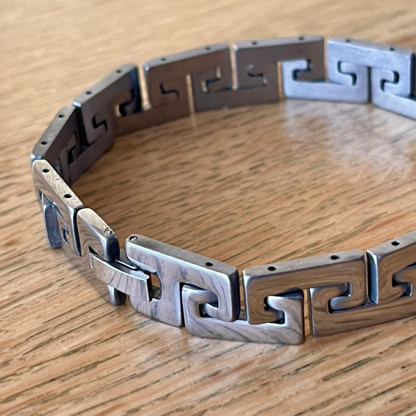 Geometric Greek key pattern stainless steel bracelet