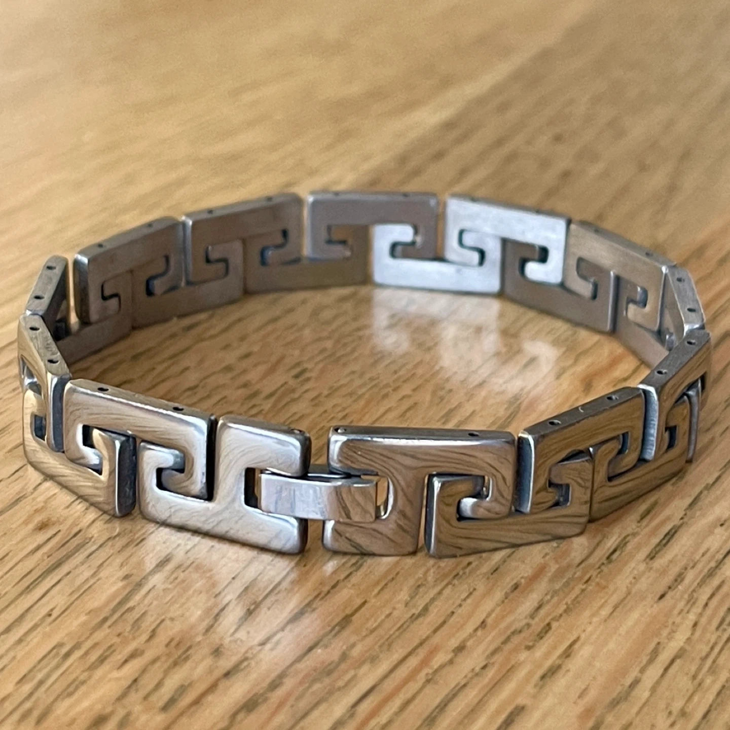 Geometric Greek key pattern stainless steel bracelet