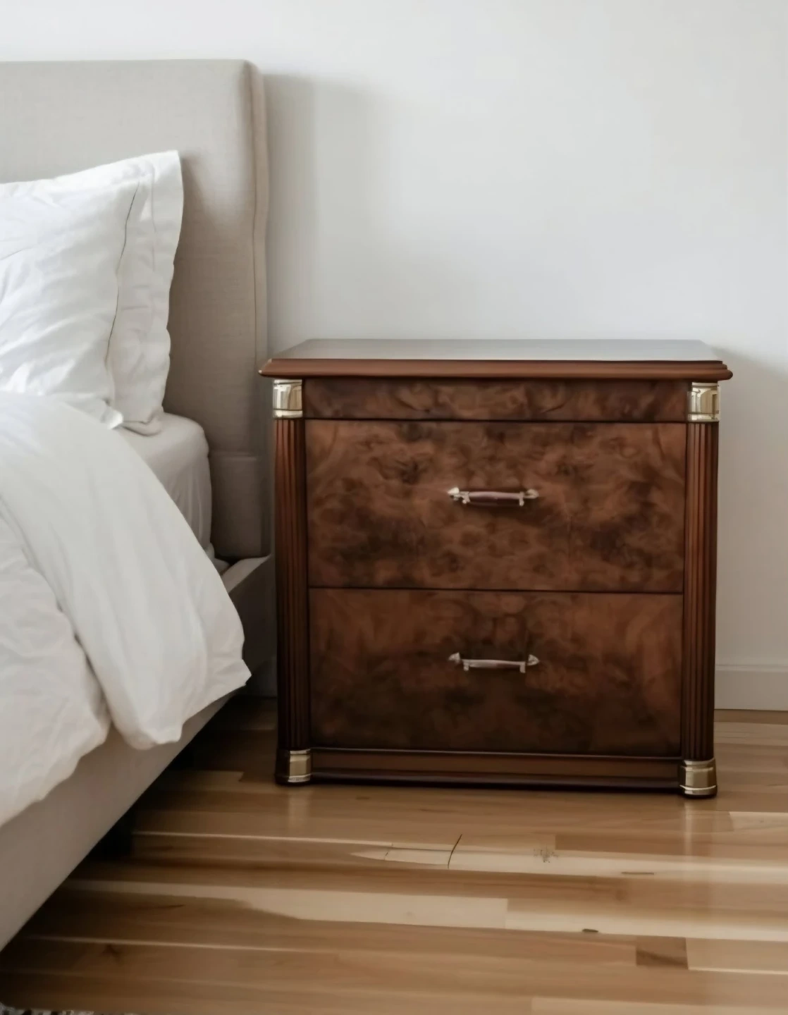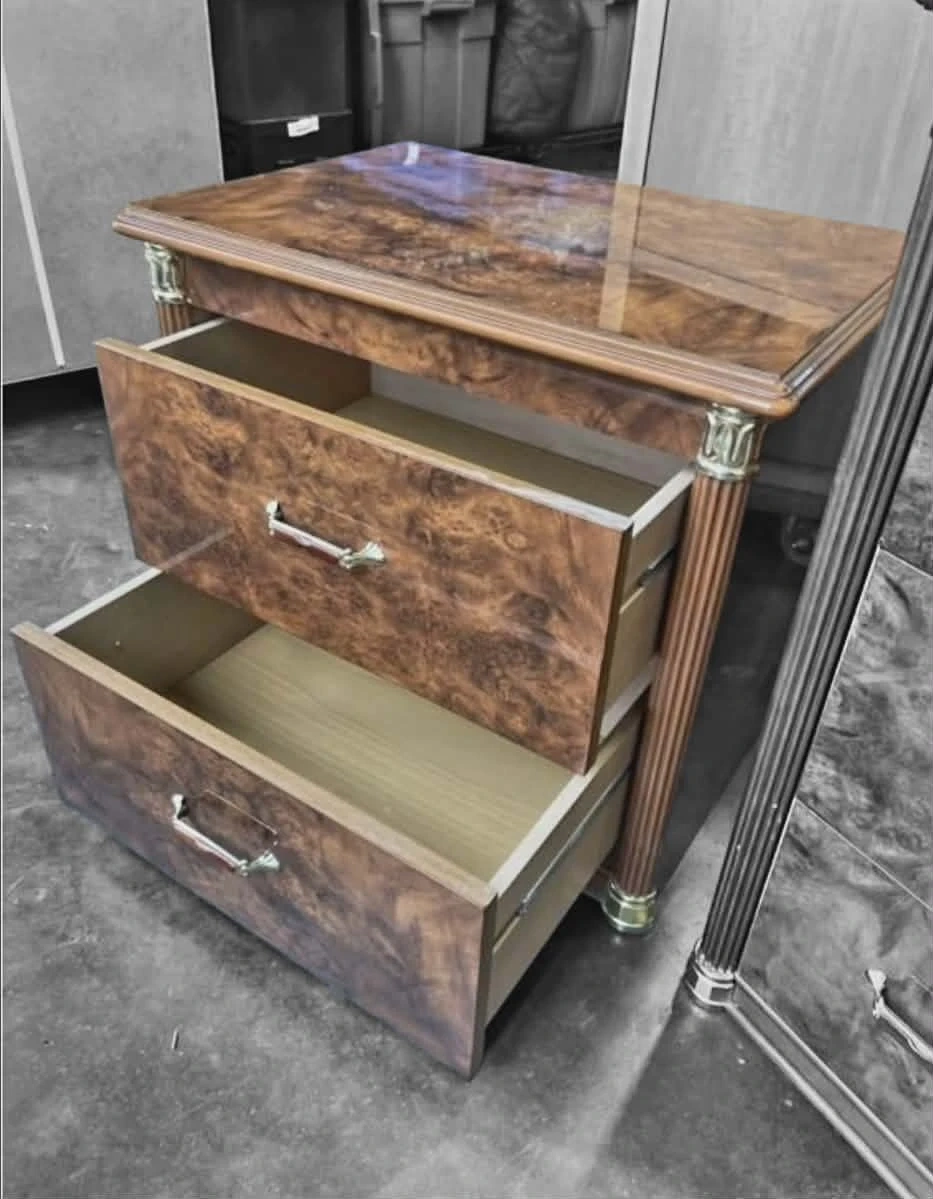 Luxury Burl Wood Nightstand Two Drawer Nightstand