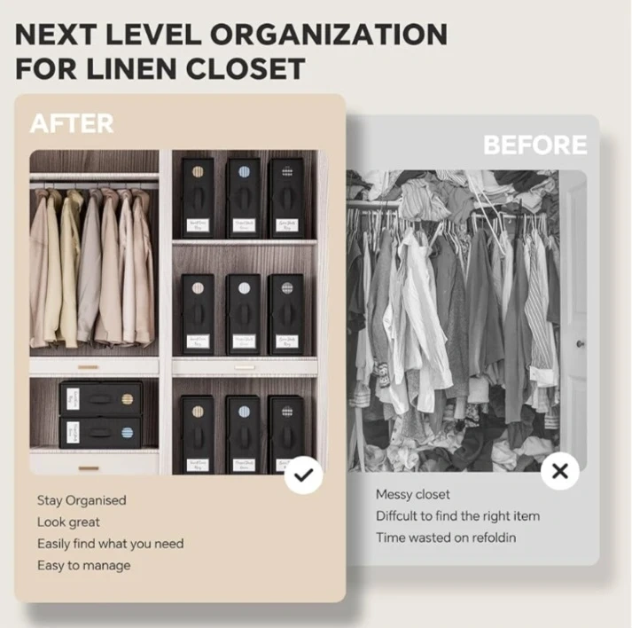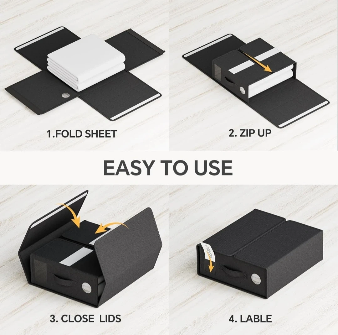 Size (Black), Foldable Sheet Set Organizer, Fabric Storage