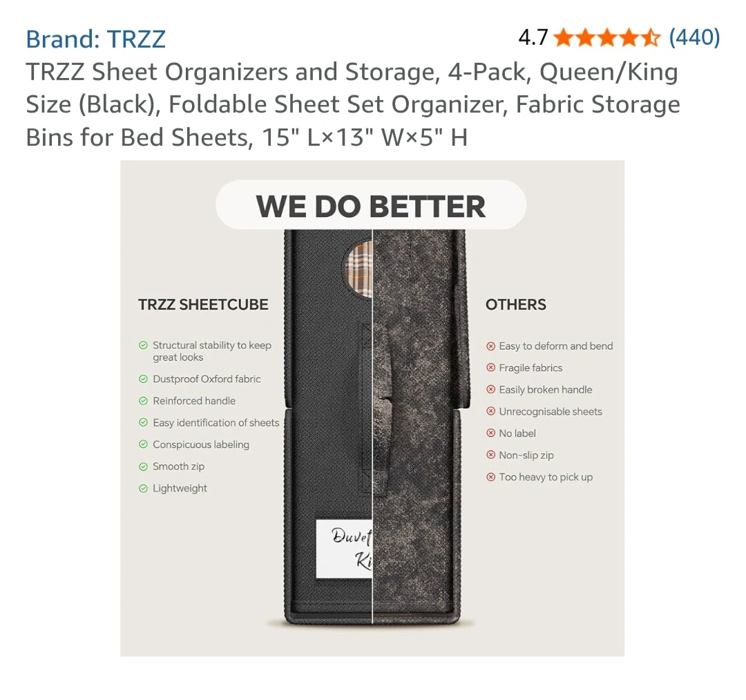 Size (Black), Foldable Sheet Set Organizer, Fabric Storage