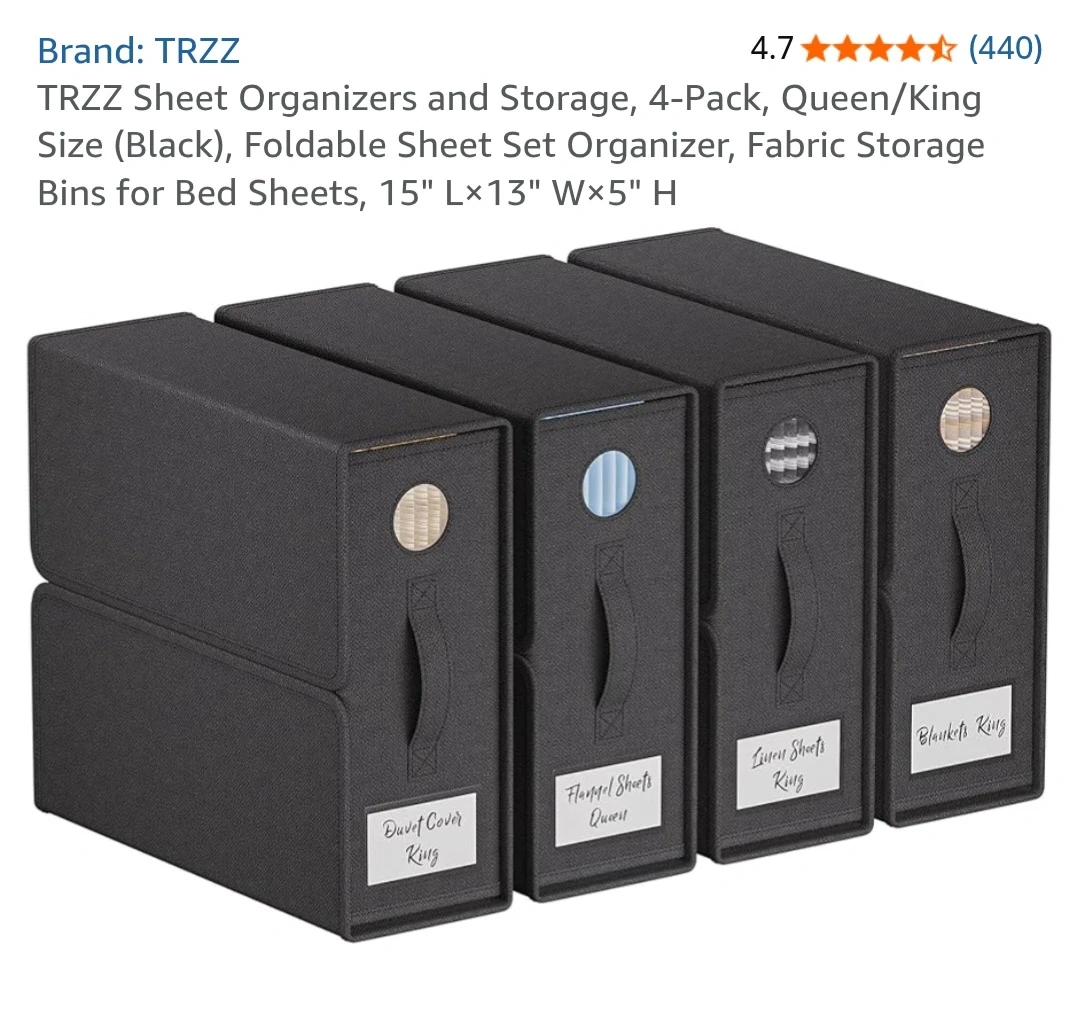 TRZZ Sheet Organizers and Storage, 4-Pack, Queen/King