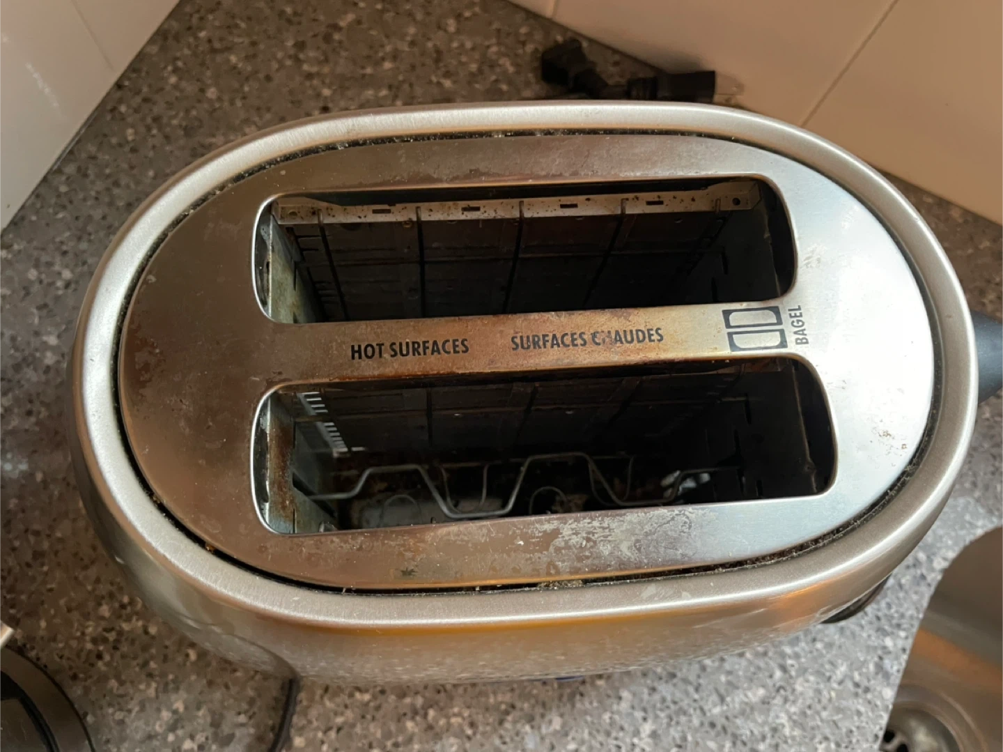 This Hamilton Beach toaster features a stainless steel finish and a fabric toaster cover. It has dual slots and controls for browning. Great for making toast or bagels in the morning!