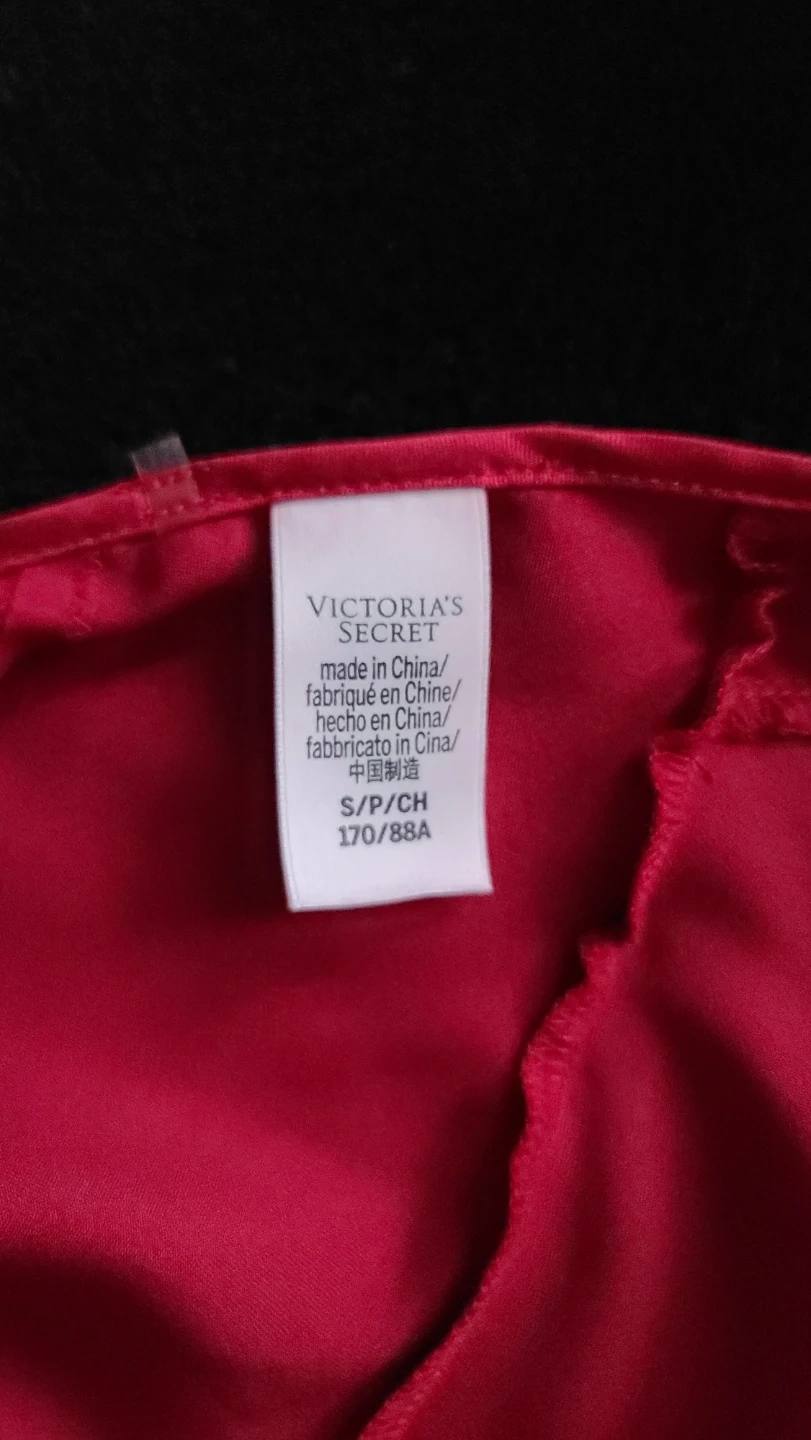 The red satin is pristine with no snags and has adjustable straps to get the fit just right.