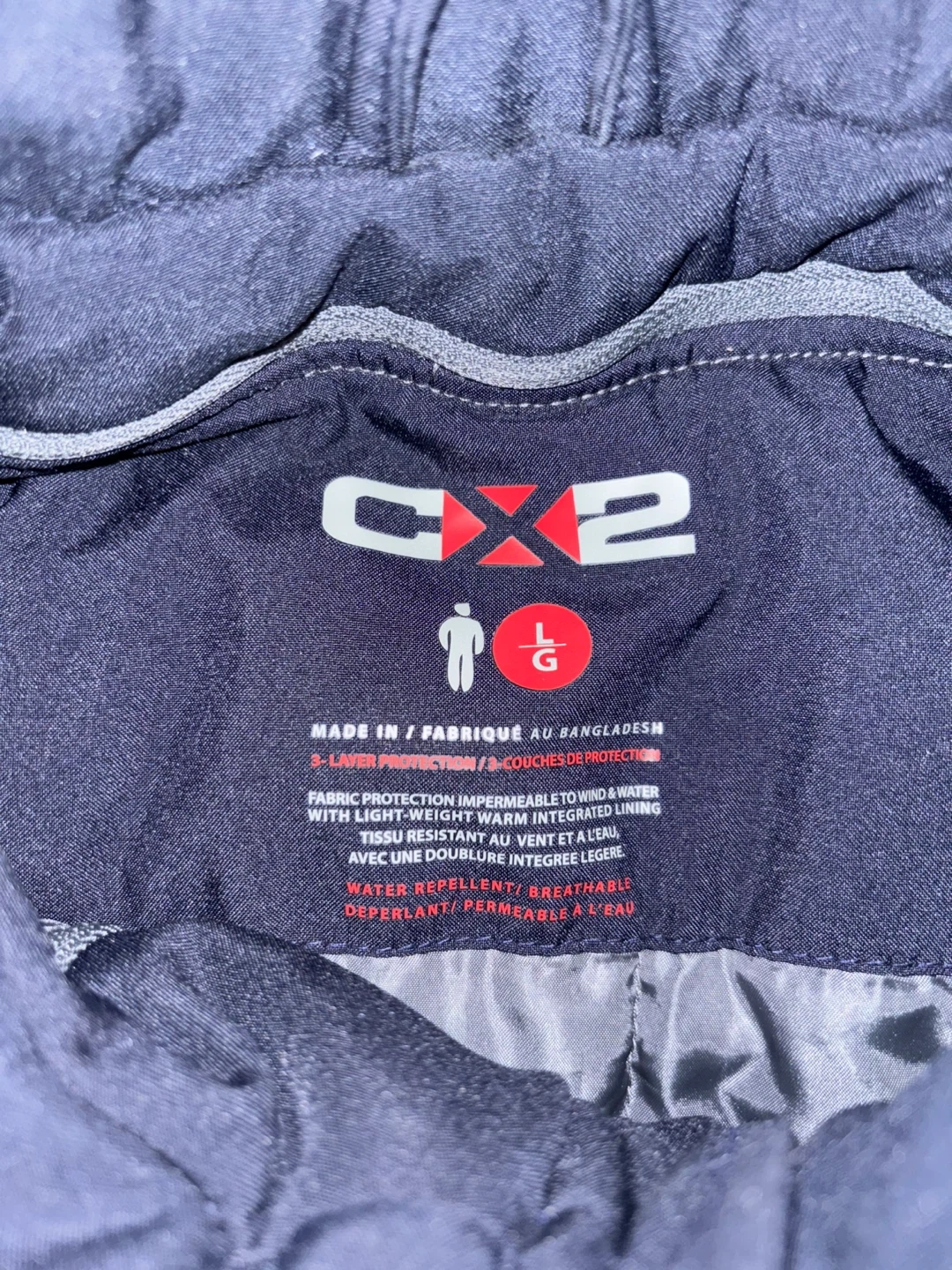 This CX2 jacket features 3-layer protection for wind and water resistance. It's made with light-weight, warm, integrated lining and has a water-repellent, breathable fabric.