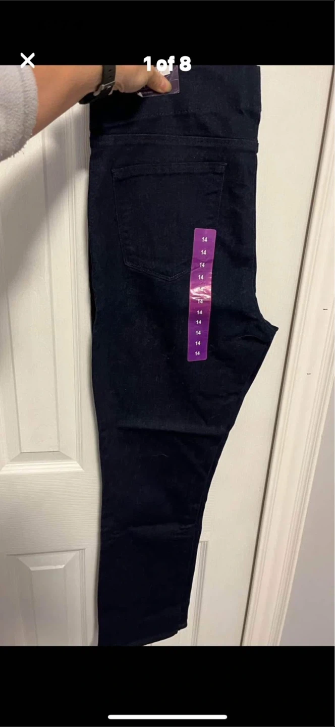 Size 14 but website says size down from regular jeans. I’d say if you’re 14/16 give them a try.