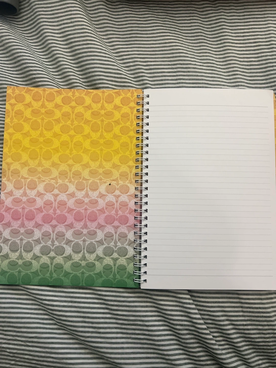 This is a brand new COACH spiral notebook with pastel signature print. It's lined paper with a pocket on the inside cover and ready for your notes or ideas.