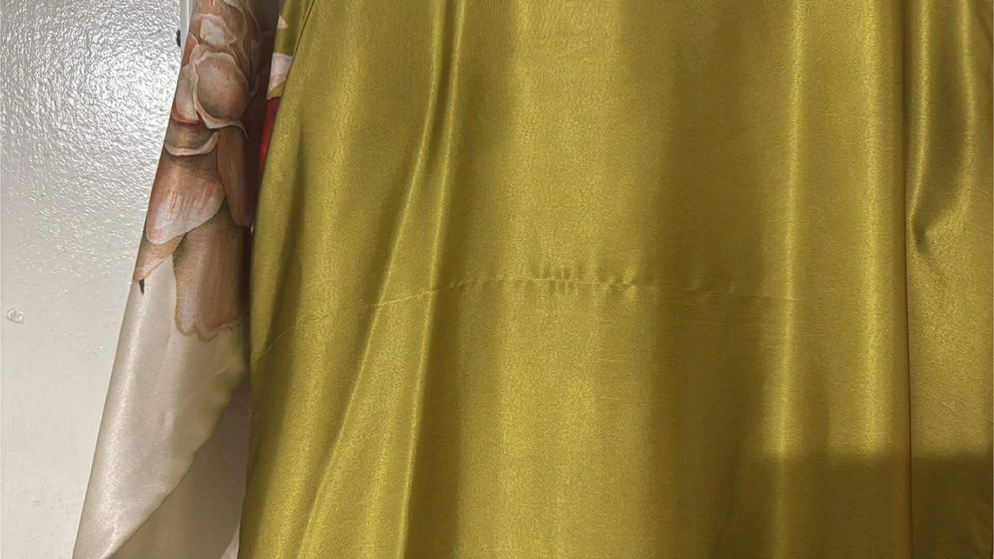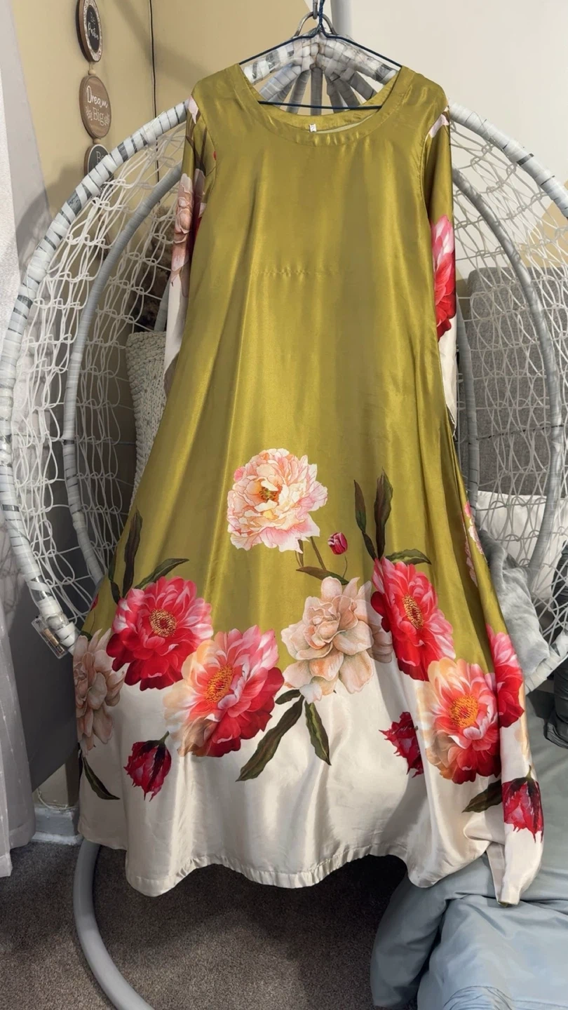 This LULUSAR dress features a vibrant floral print. It's a long-sleeved, A-line style. The dress is made of a satin-like material. A great choice for any special occasion!