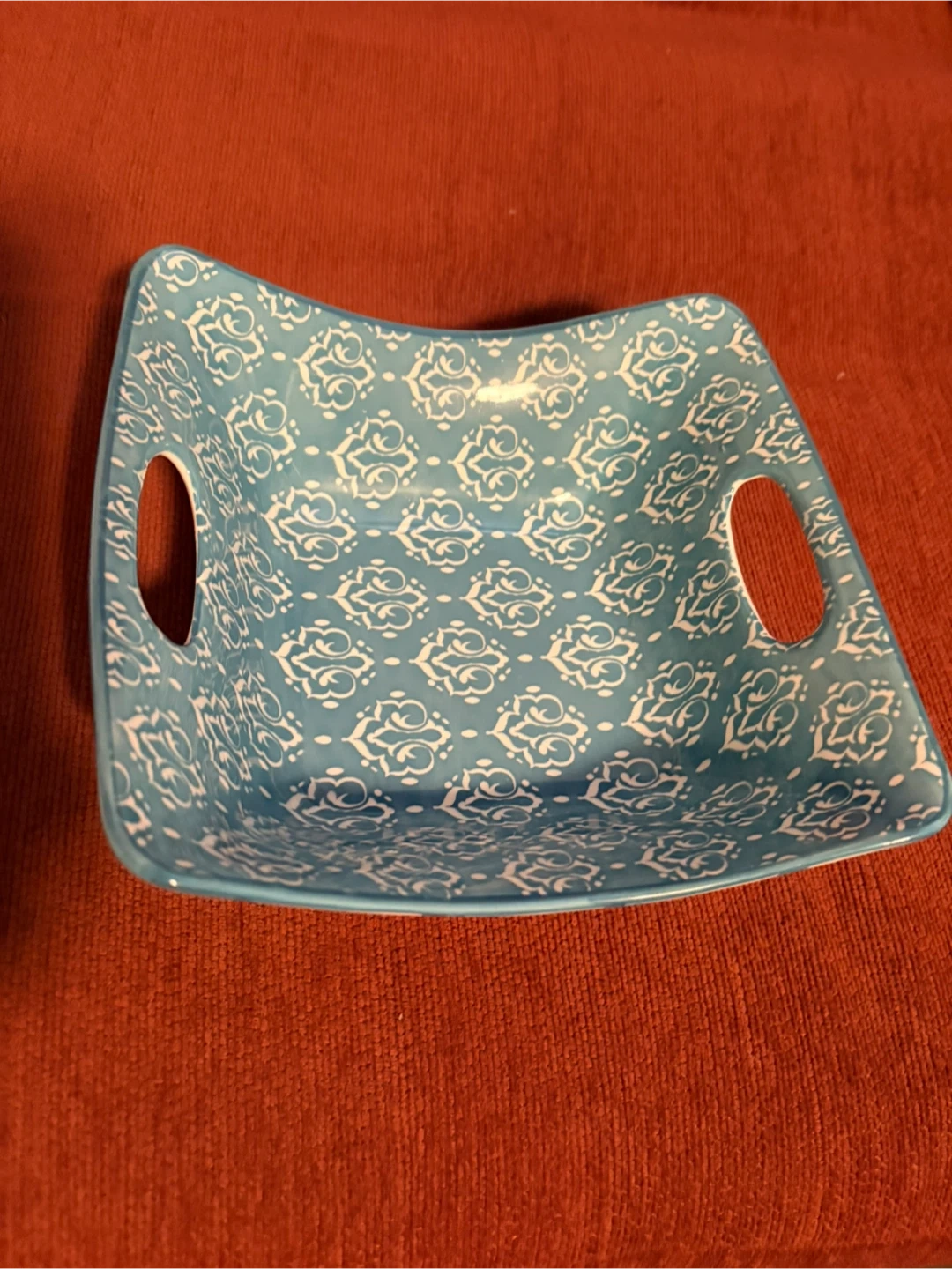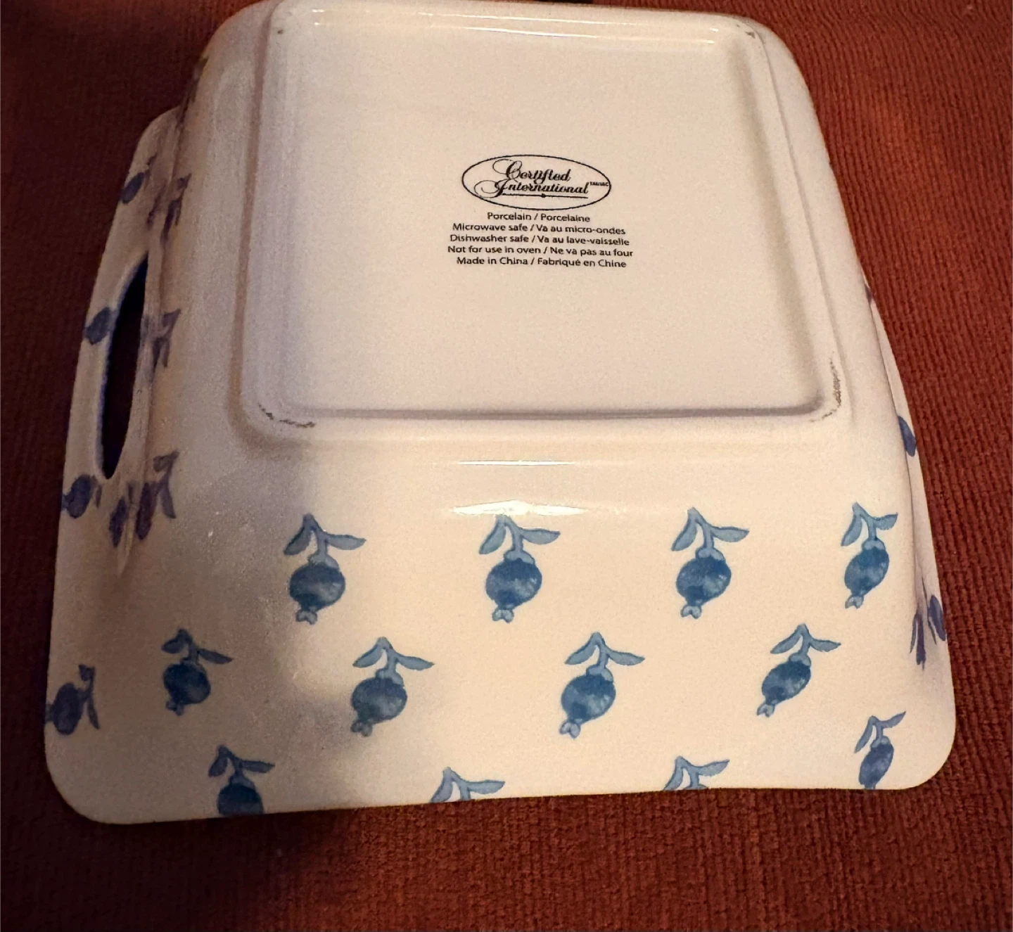 This attractive ceramic serving dish from Certified International features a charming blue and white pattern.
