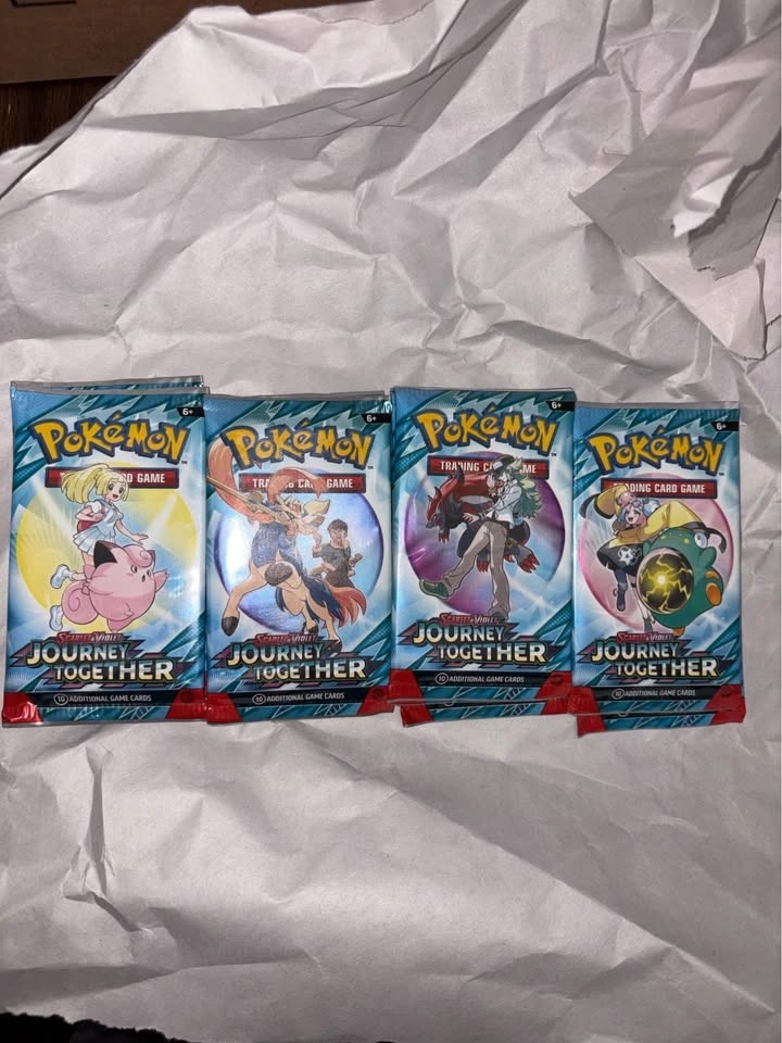 Awesome collection of Pokemon TCG booster packs. Includes 3 Japanese Terastal Phase EX packs, 2 English Temporal Forces packs, 2 English Paradox Rift packs, and 4 English Journey Together packs. All are factory sealed.