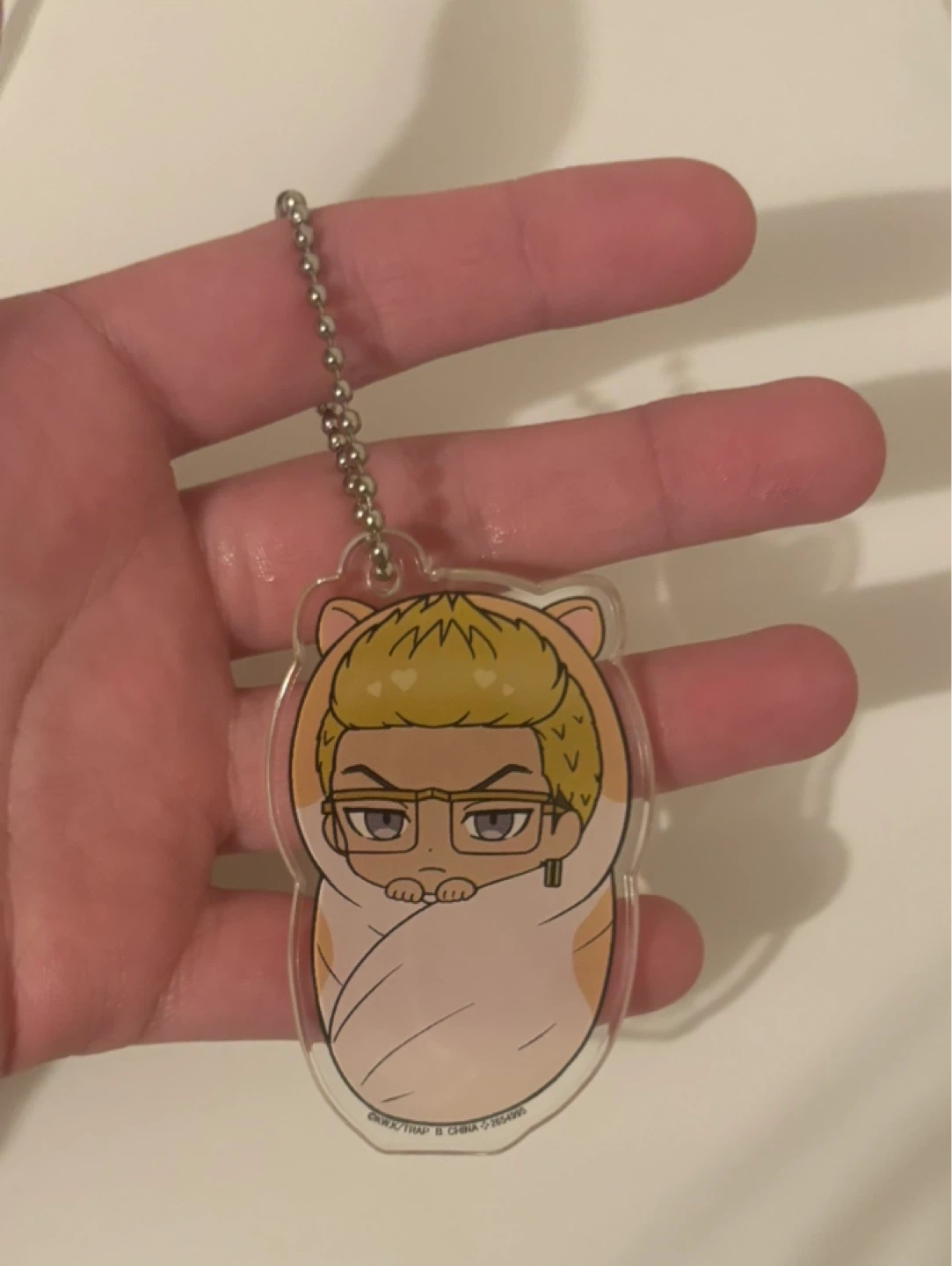Cute acrylic keychain featuring a character from Tokyo Revengers. It's attached to a silver ball chain for easy carrying. Perfect for anime fans!
