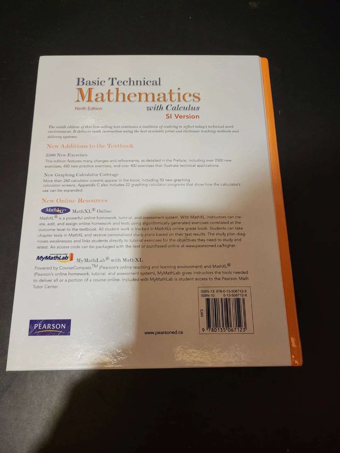 This is the Ninth Edition of Basic Technical Mathematics with Calculus, SI Version. It offers new exercises and graphing calculator coverage. The book includes access to MathXL and MyMathLab online resources. (Not sure if still functional)