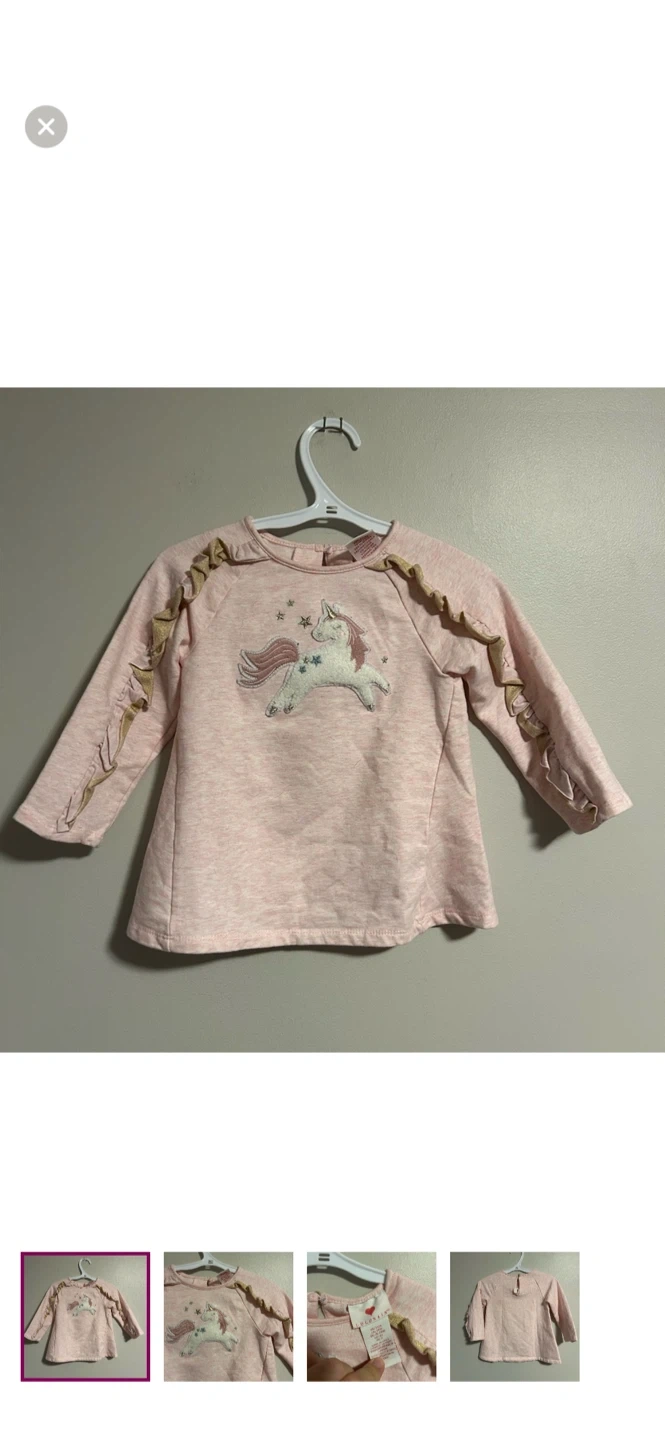 Lulurain brand. Long sleeve ruffle sleeve sweater. Pink unicorn. Size 24m. Brand new condition