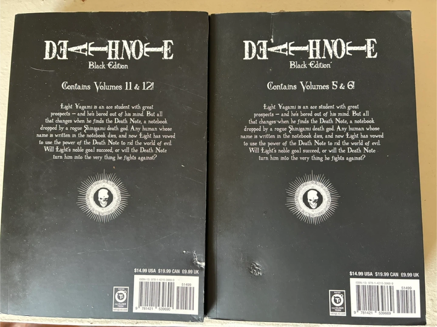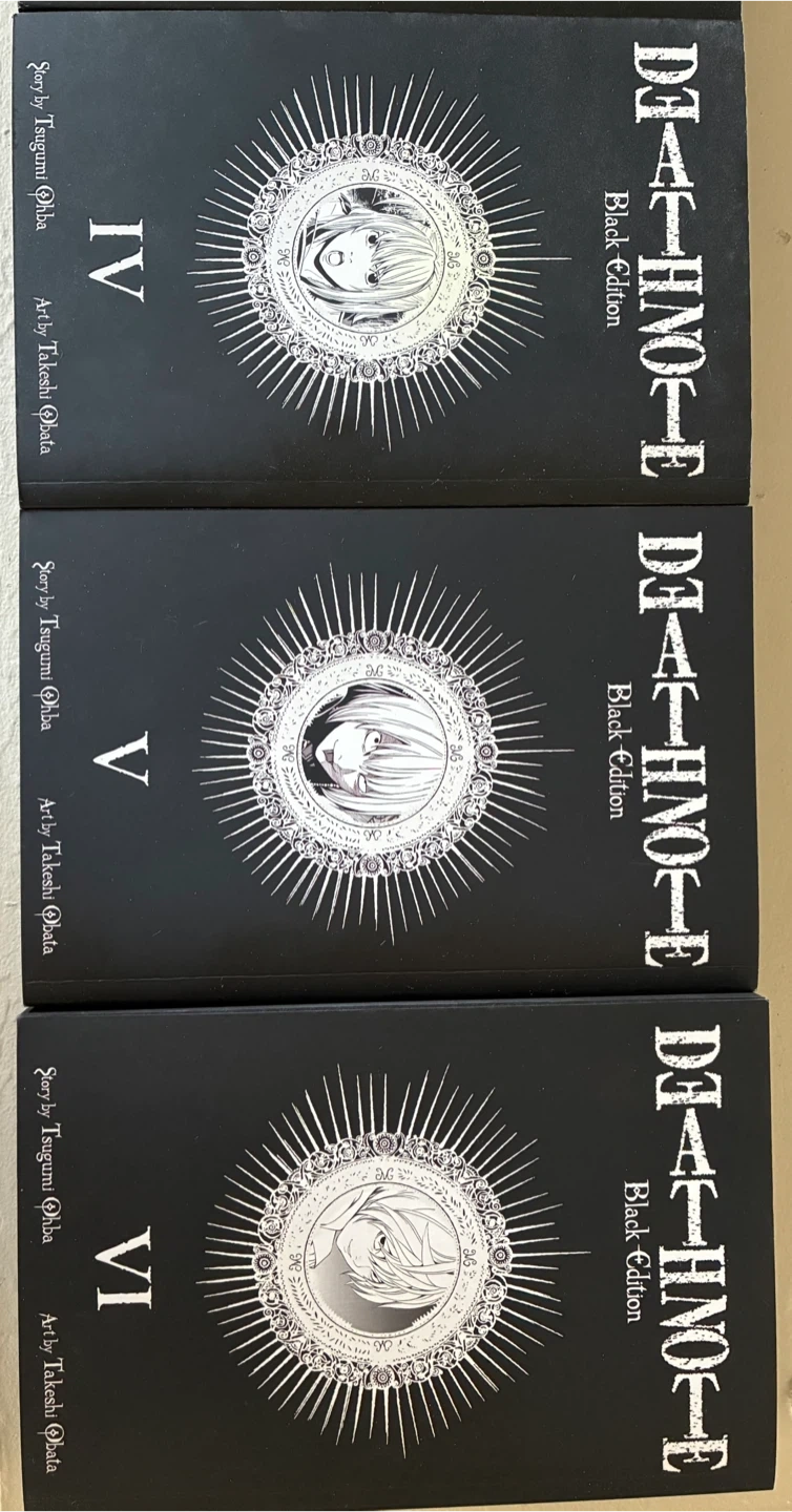 Complete set (volume 1-6) of the Death Note Manga in rare Black Edition (covers and page edges are a velvety soft black matte texture). Some fading and a little damage on two of the backs as pictured. Pages are all in perfect condition.