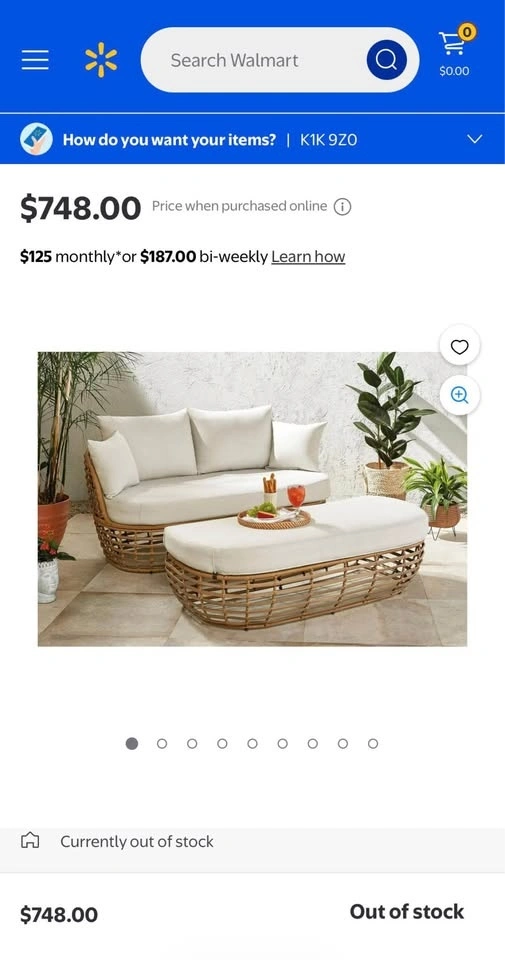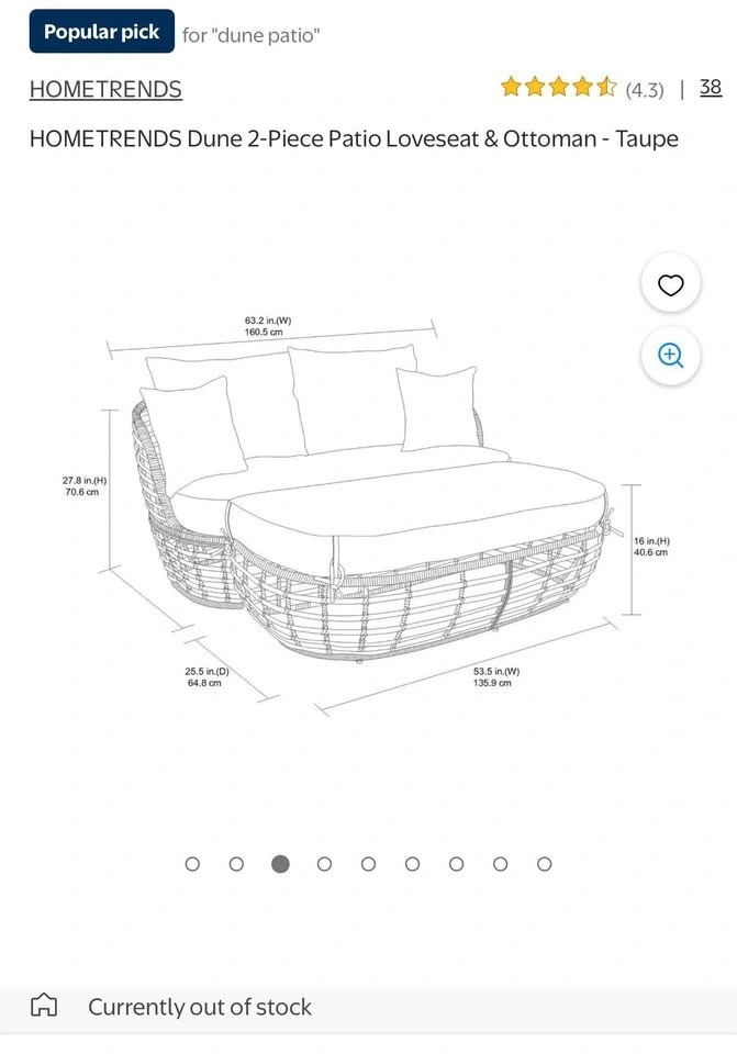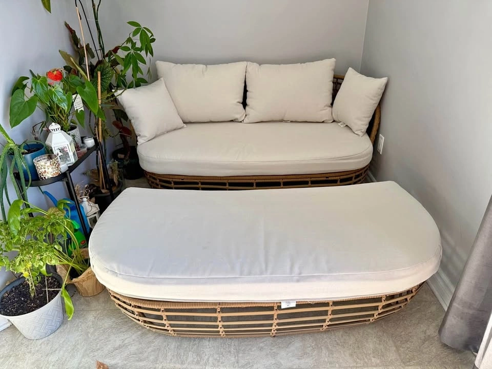 Hometrends Dune 2-Piece Patio Loveseat & Ottoman in Taupe. Can be used as a sofa or daybed. Excellent condition, purchased last year and only used indoors a few times. Selling because I need the space for a home office. The all-weather design features handwoven resin wicker wrapped around heavy-duty, rust-resistant steel frames. Includes UV-resistant cushions. Pet-free, smoke-free home. Pick up in Orleans on Esprit Drive. Welcome to see before purchase.
