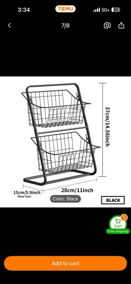 Features 2 removable wire baskets, strong metal construction, and a modern black finish. Its freestanding design is great for the kitchen, pantry, bathroom, or office.
