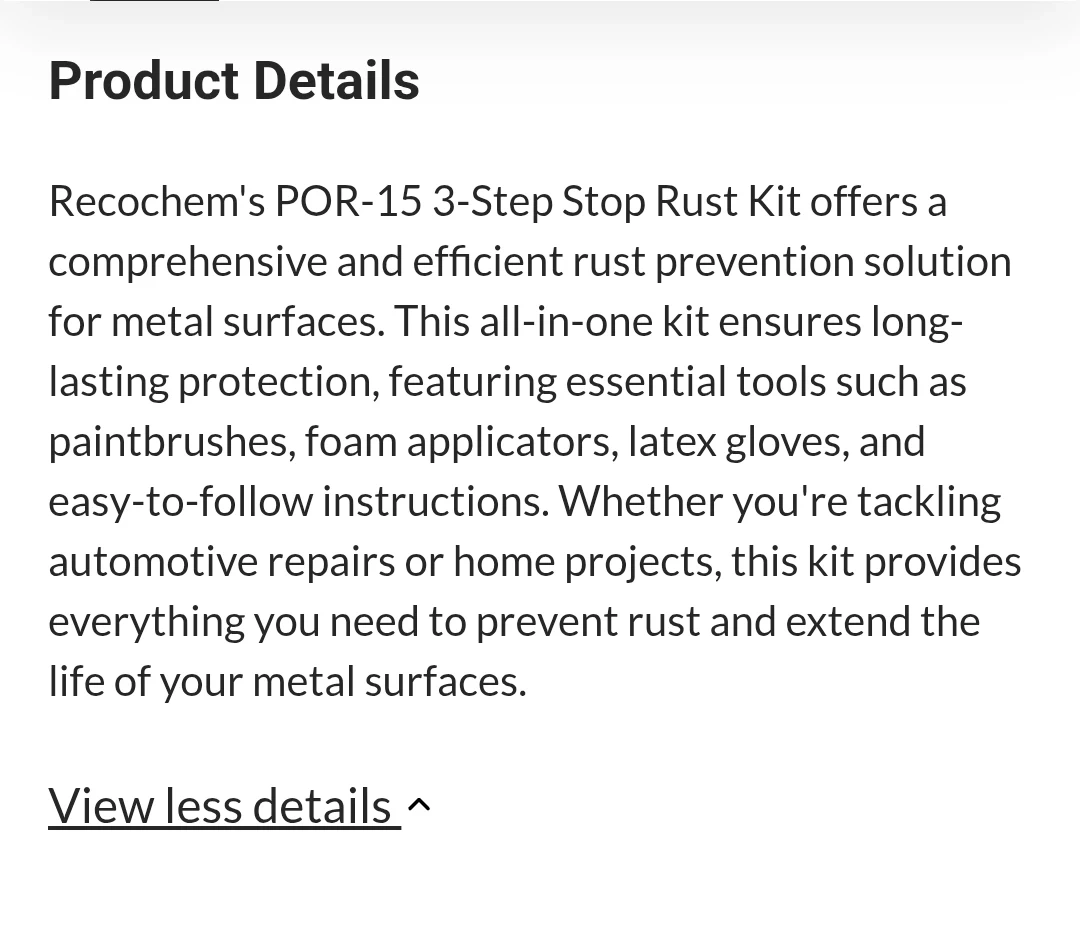 Brand New Recochem POR-15 3-Step Stop Rust Kit $25