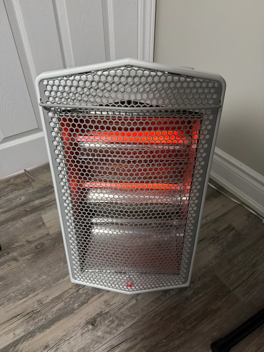 This is a Pelonis radiant heater. It has adjustable temperature settings with two knobs. The heater has a metal grille and a white casing. It's designed for personal space heating. Open to offers!