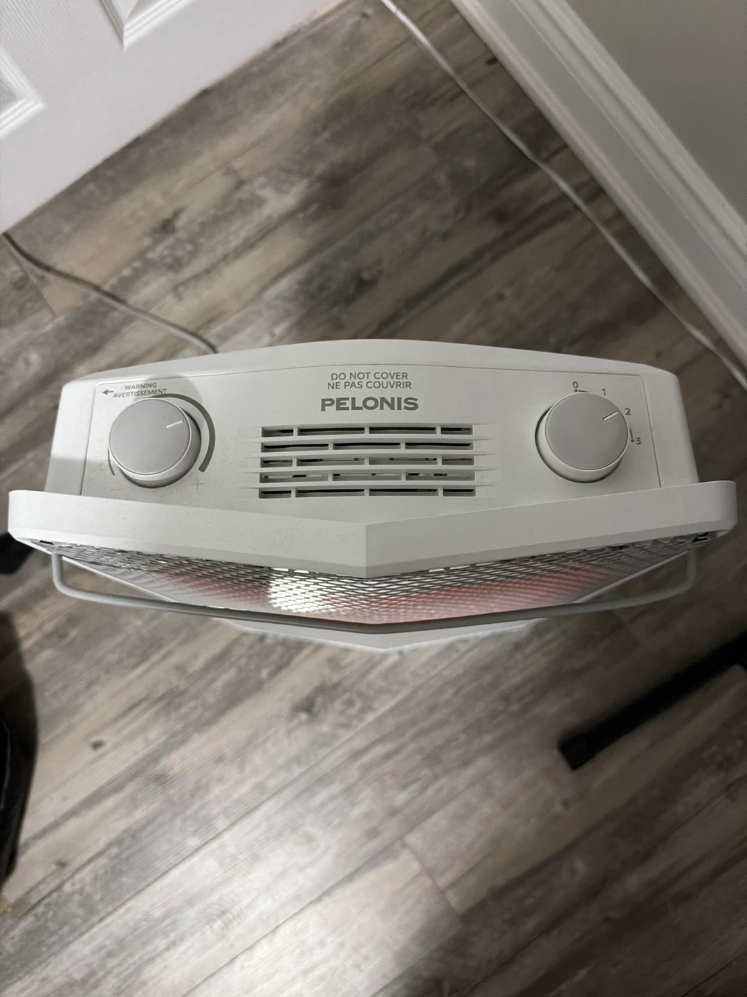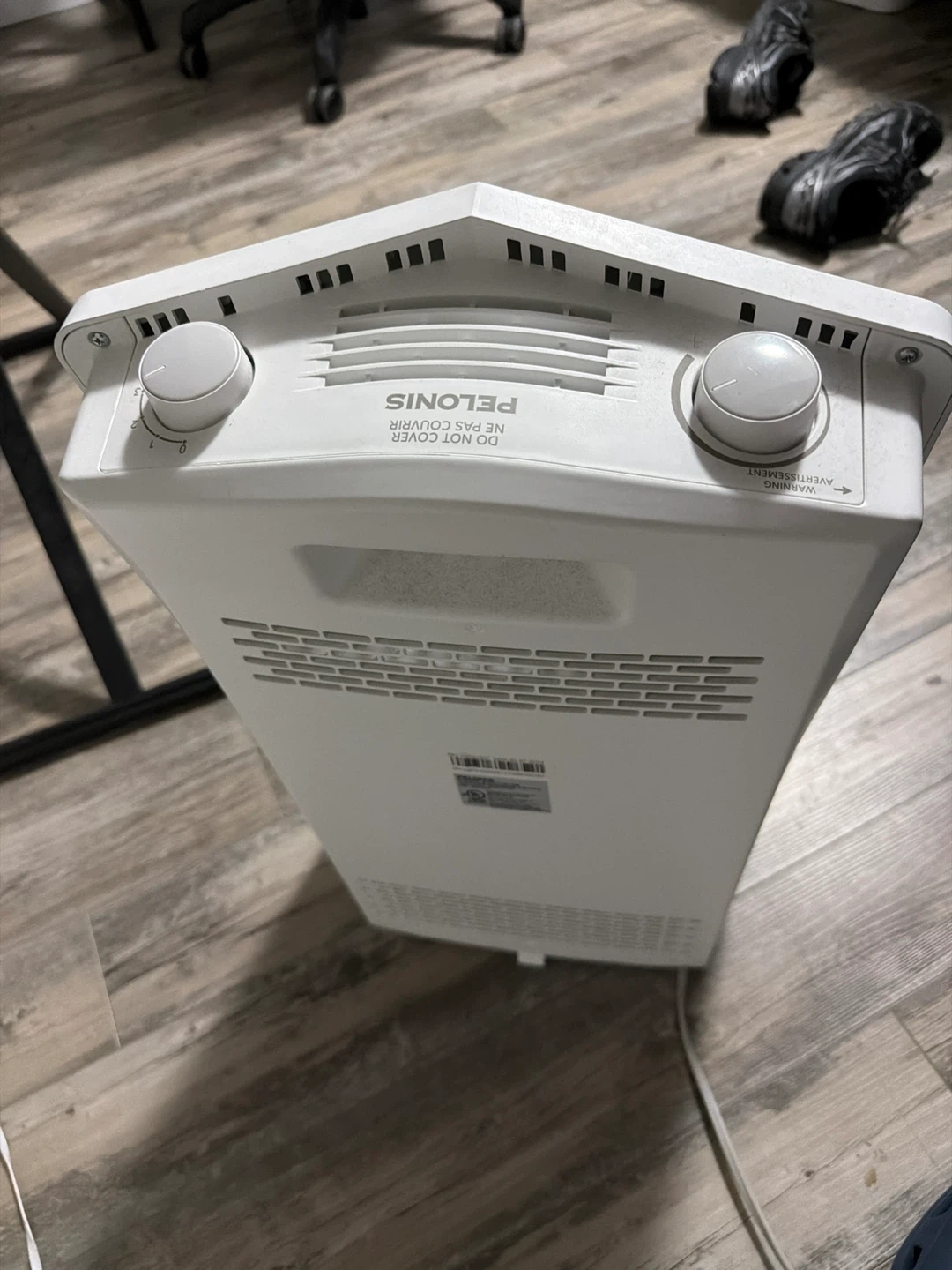 This is a Pelonis radiant heater. It has adjustable temperature settings with two knobs. The heater has a metal grille and a white casing. It's designed for personal space heating. Open to offers!
