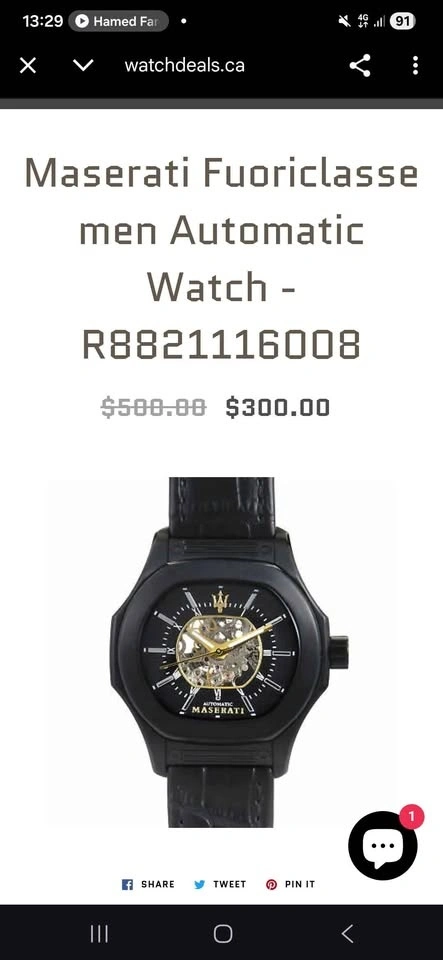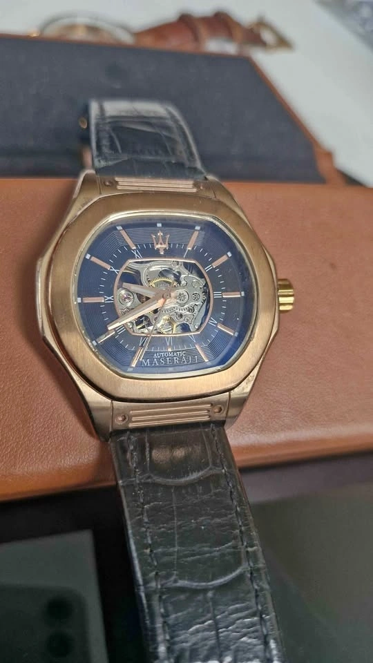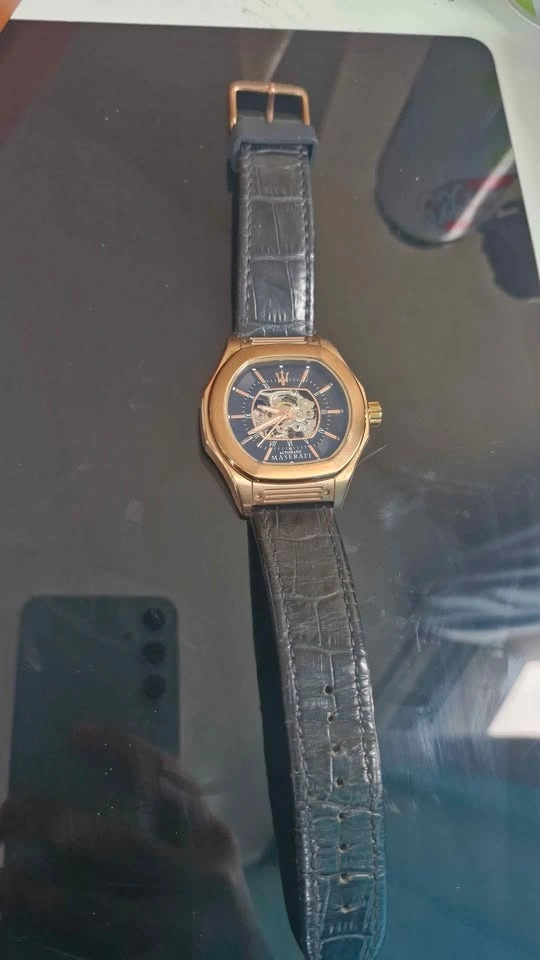 Great condition. Automatic movement from Japan. Selling a Maserati Fuoriclasse men's automatic watch, model R. It's a stylish timepiece with a distinctive design.