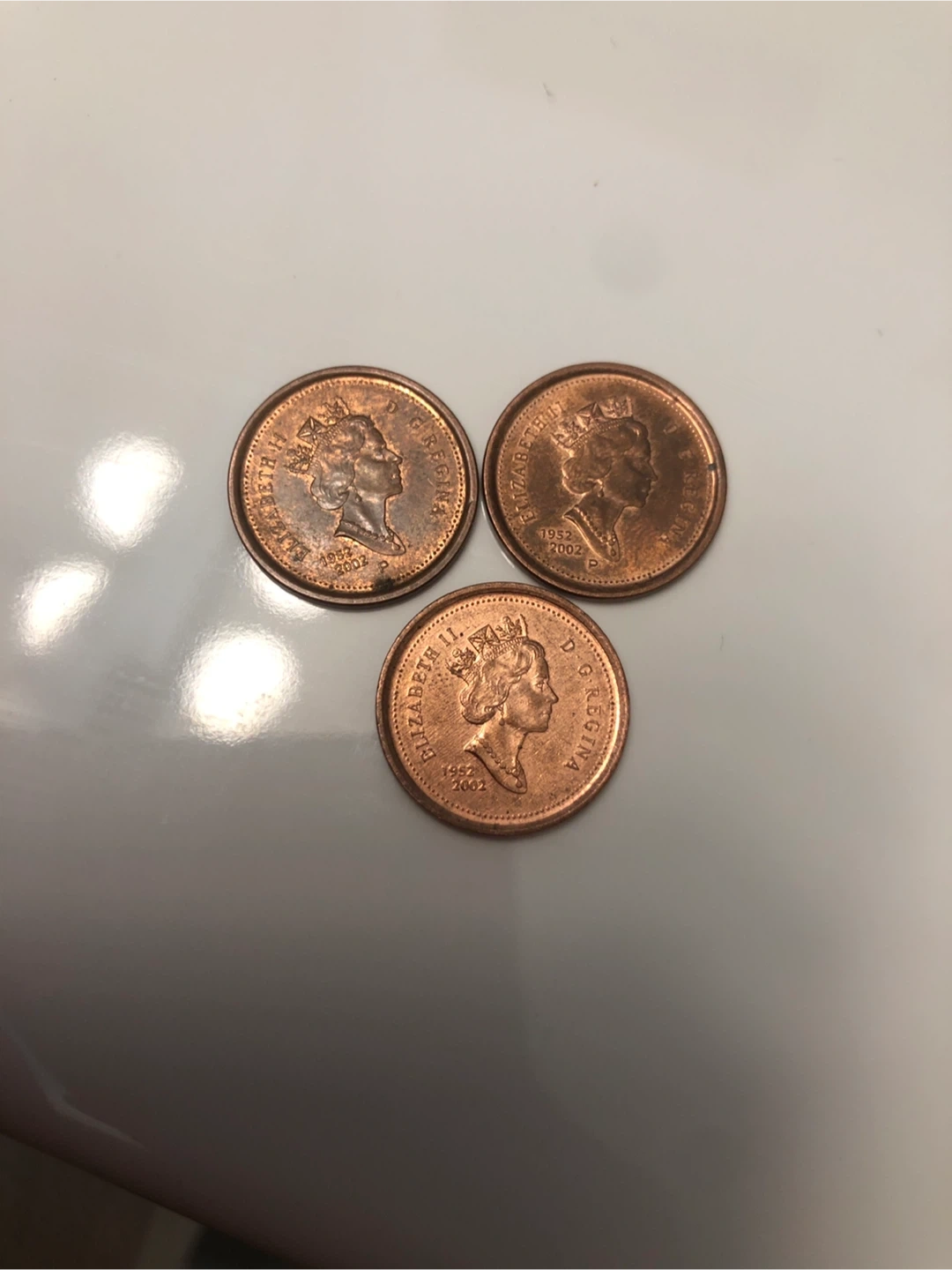 Three Canadian pennies dated 1952-2002, two of them are Ps but one is unmarked. Collectible pennies, in E-bay they are up to 13,000$ but I’m selling them for 200 each. I don’t know how valuable they actually are or if they’re real or not, I found them in a giant jar of pennies, so name a price that more experienced collectors would pay and I would probably go with it