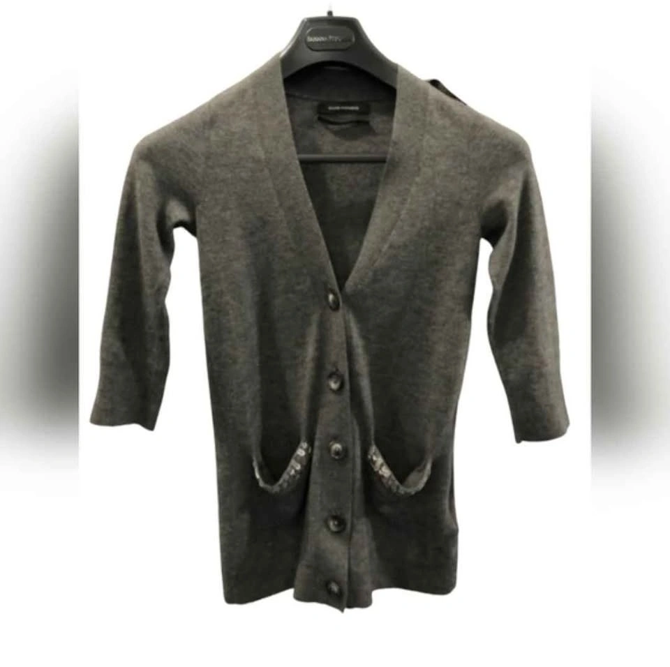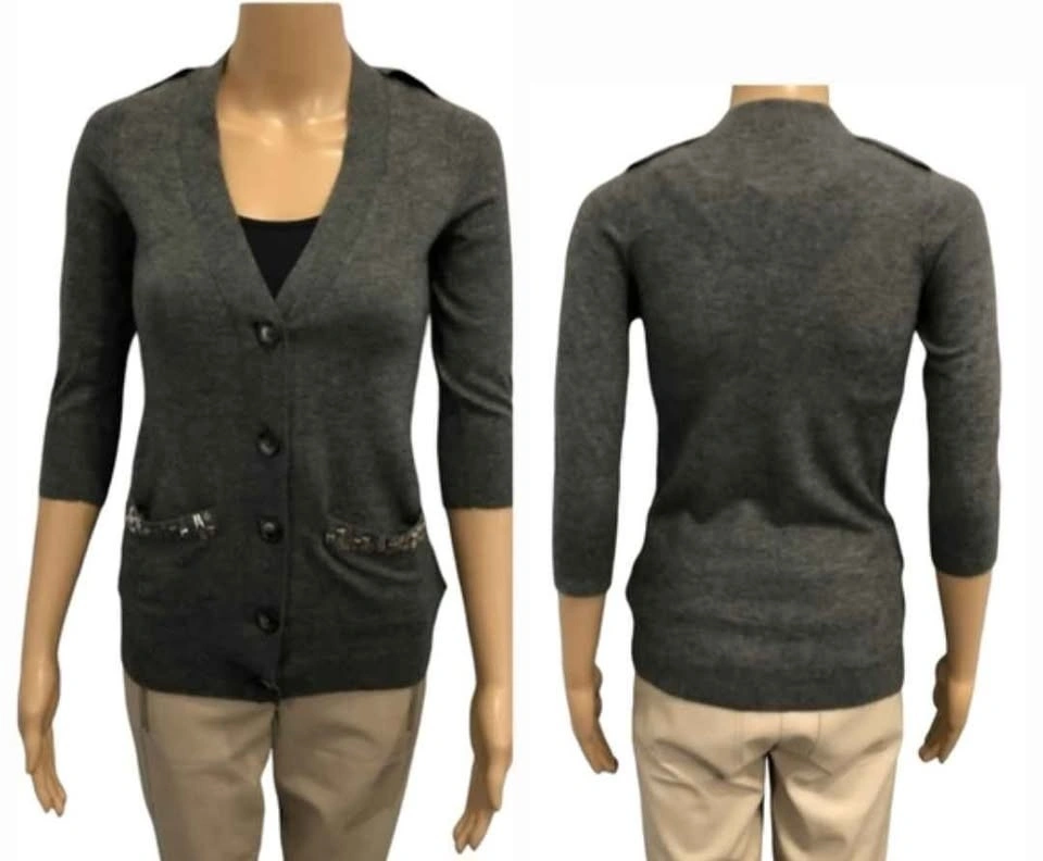 Fabric: 100% cashmere. Five-button closure with just below the elbow length sleeves.